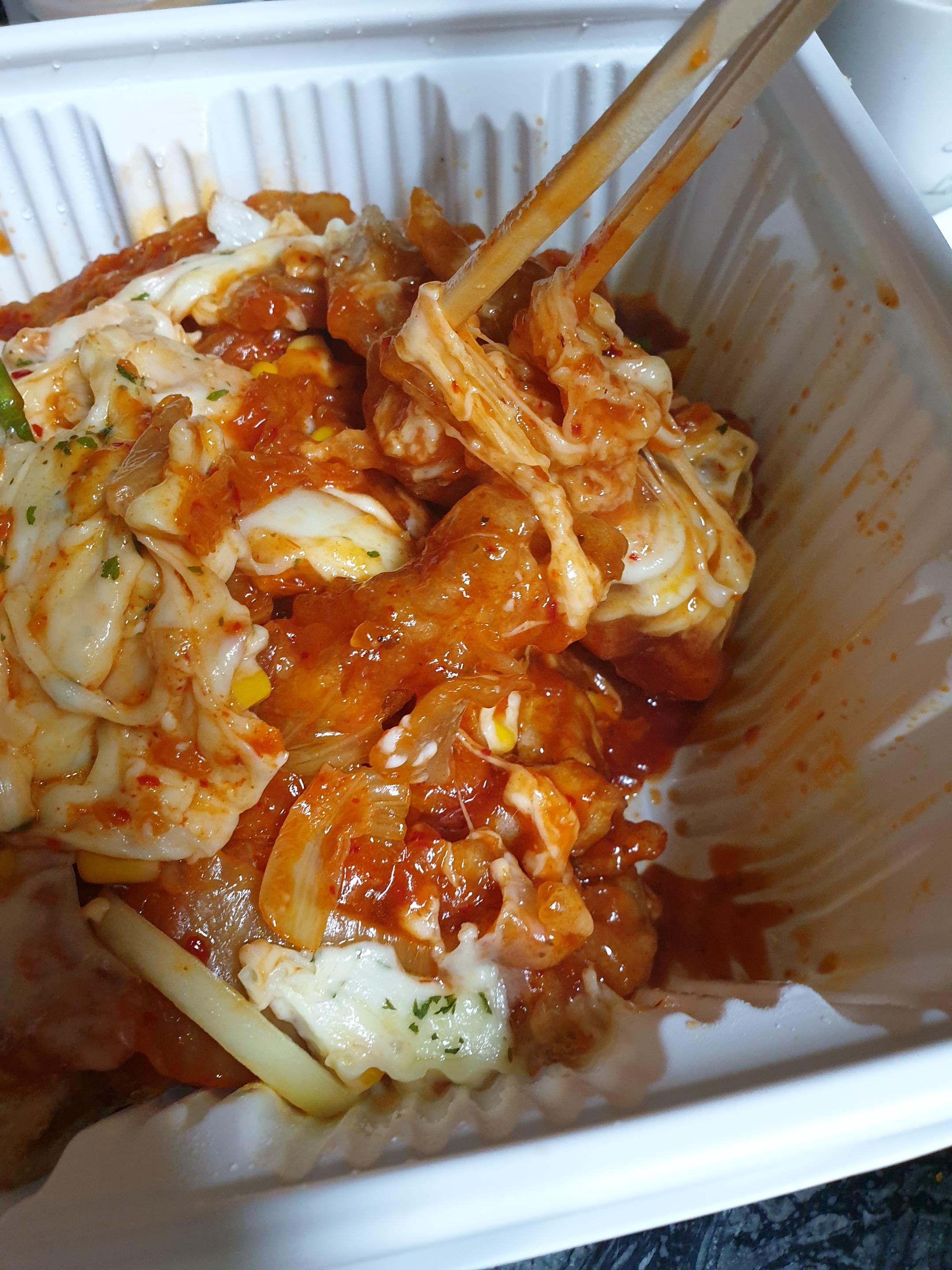 치즈와 비벼보니까 더 김피탕 같네요.