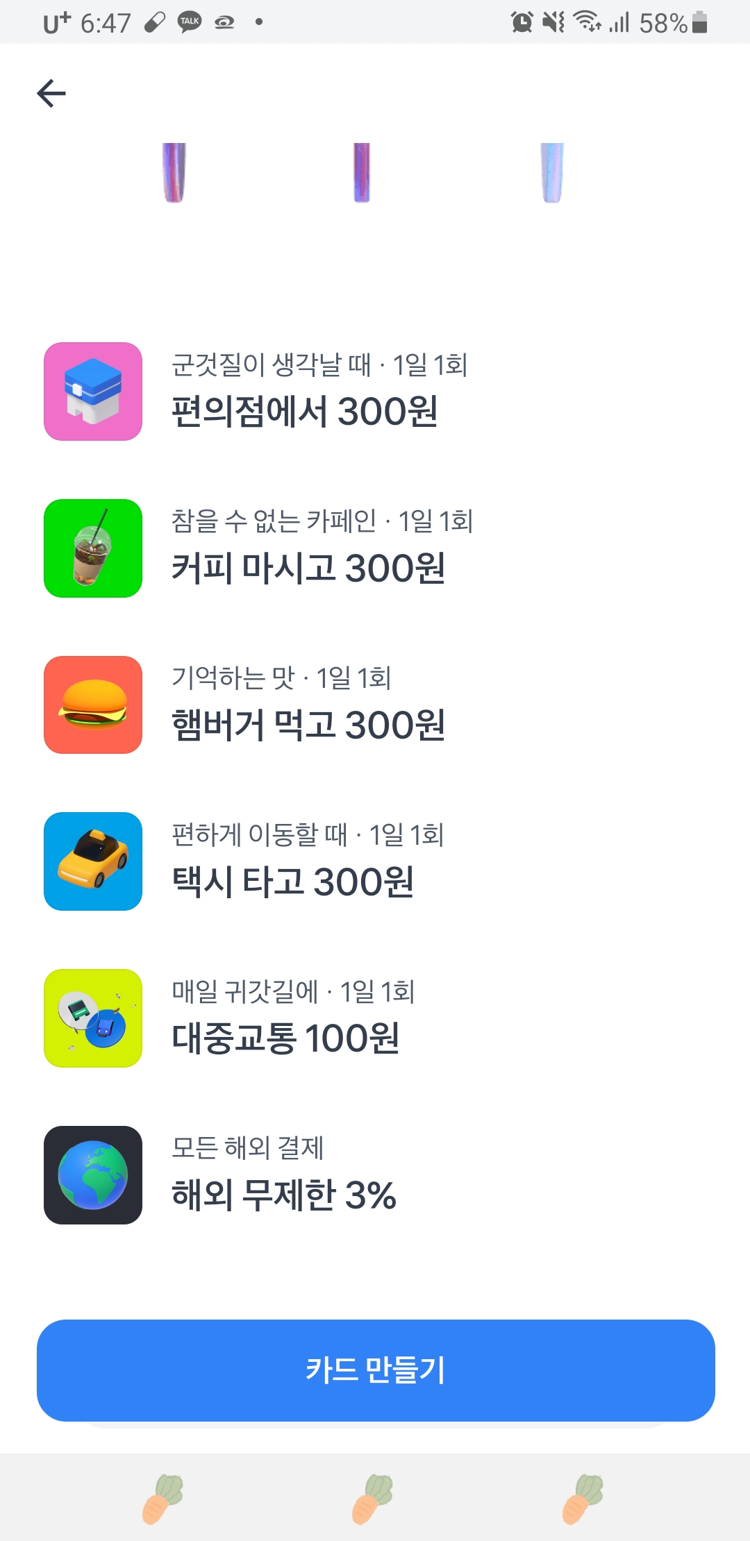 매일 교통비 100원씩 캐쉬백이 된다고 하더라구요.
