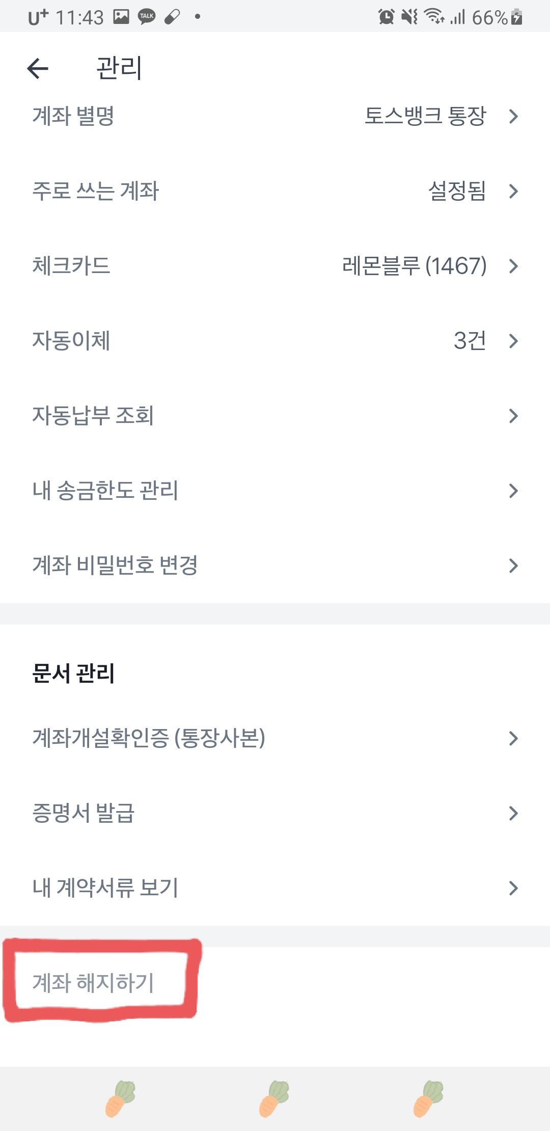 제일 밑으로 내려오면 해지하기 버튼이 보임
