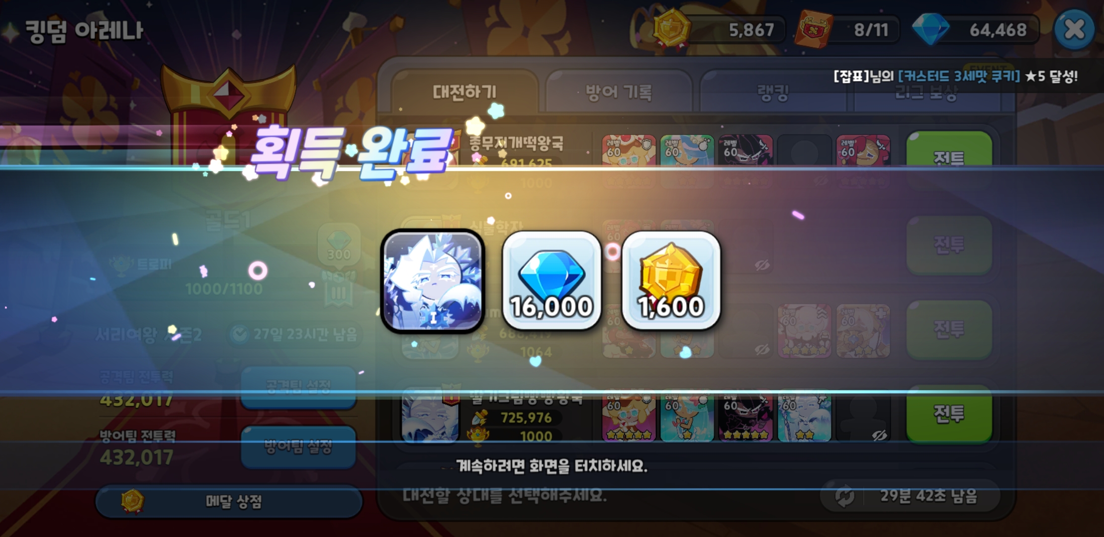 | 쿠킹덤 근황/퓨어바닐라 획득/킹덤 아레나 마스터 진입! (0) | 2022.01.26 |