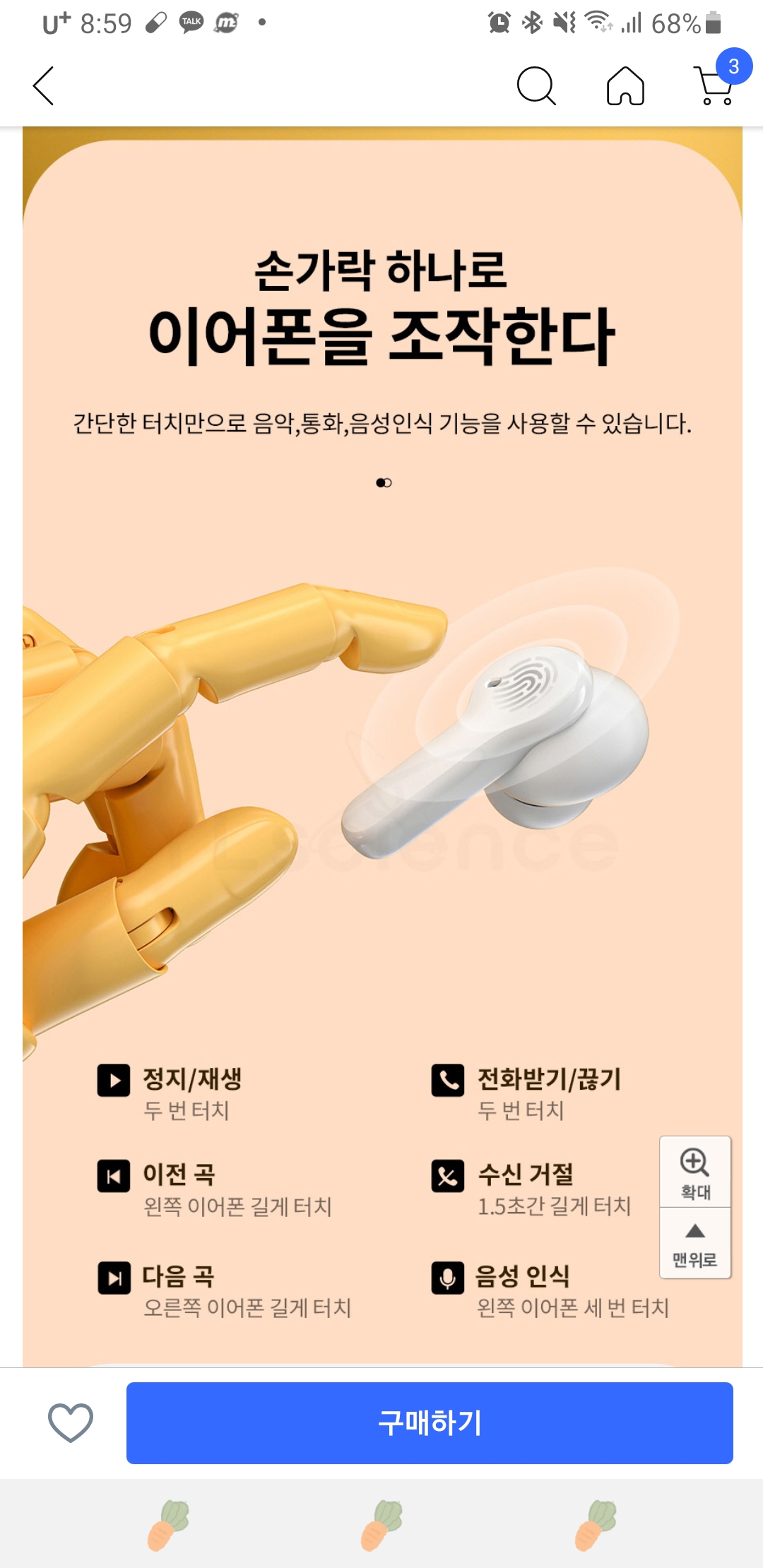 귀여운 디자인에 나쁘지않았으나 초기부터 음량이 딸려서ㅠㅠ모든 것을 풀음량으로 들어야 잘 들리더라구요.
