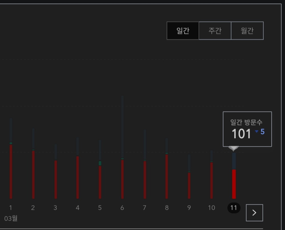 그리고 2월에 비해서 조회수가 5백명 정도 증가했습니다.