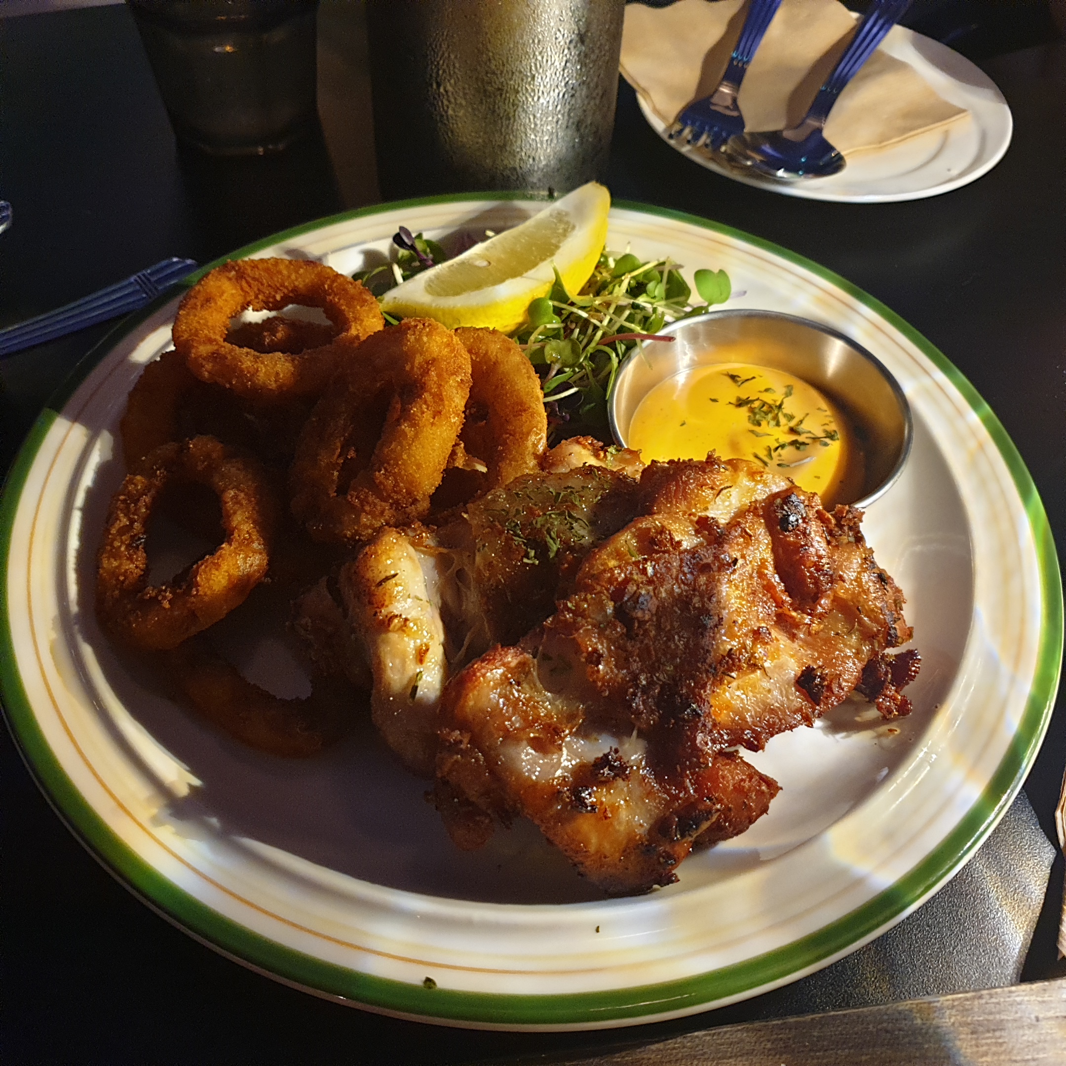 어니언링과 치킨을 먹었는데
