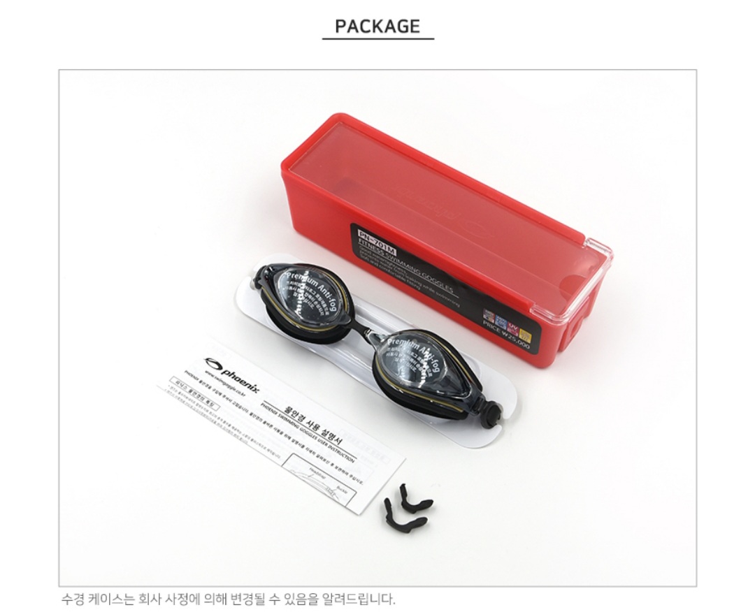 구성은 케이스, 수경, 사이즈별 코걸이예비 2개