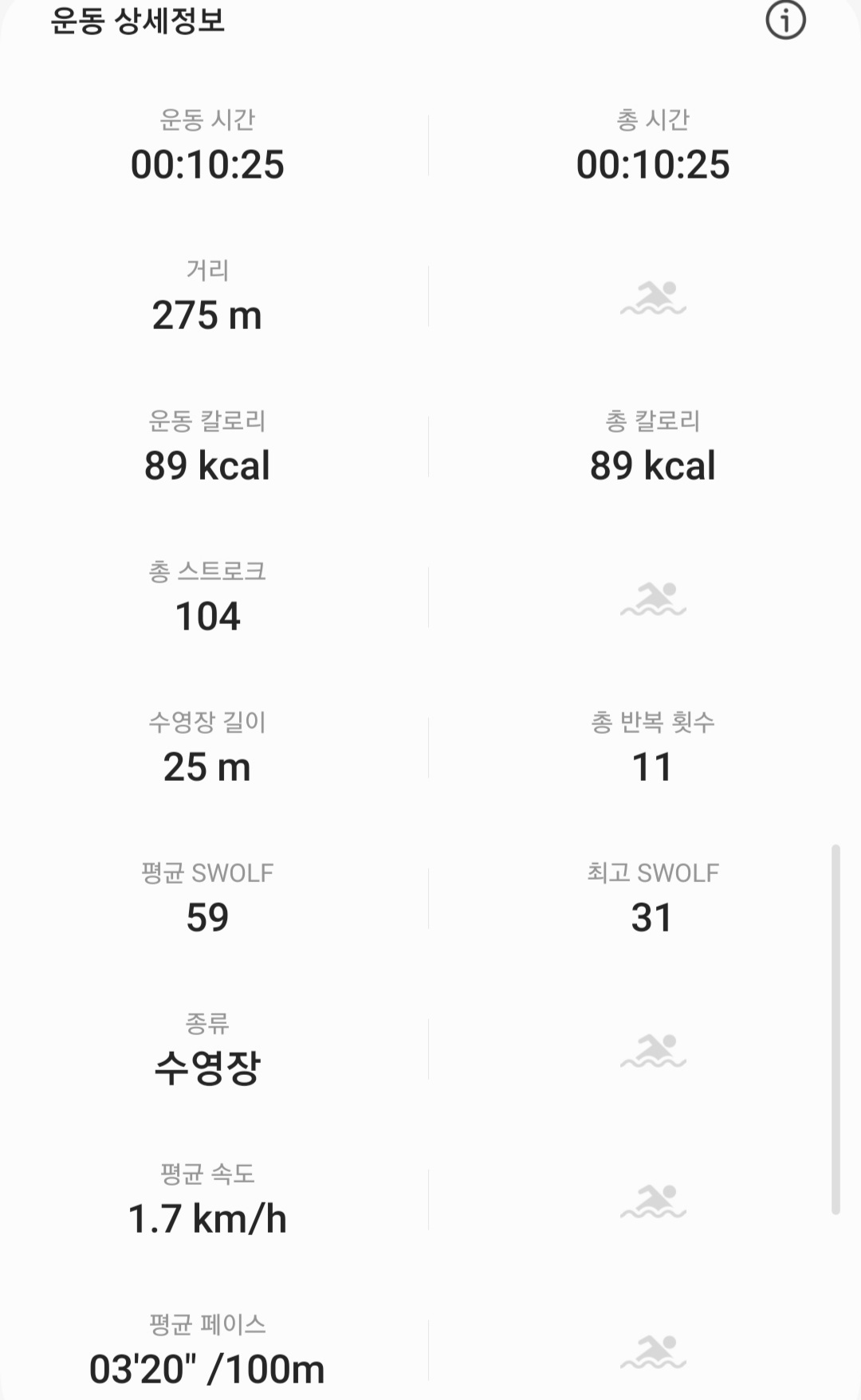약간 터치 안먹혀서 늦게 끝냈고 접영 발차기 하느라 25m는 인식x
