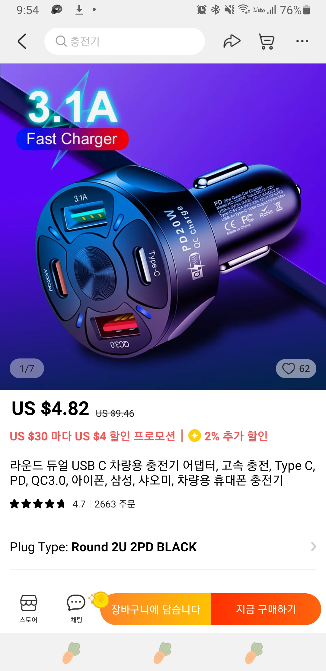 1개는 고속충전 1개는 일반충전 이었어요.