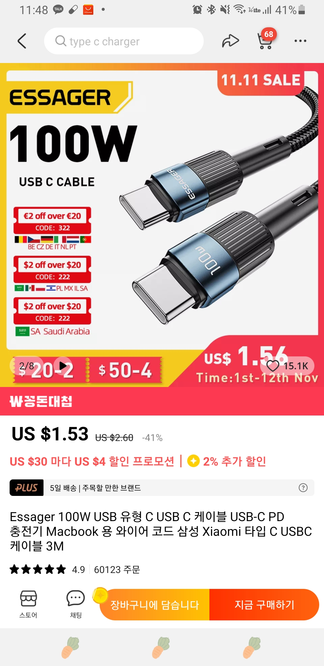 | 엄청난 배송속도의 알리익스프레스(toocki c to c 100w 케이블) (0) | 2022.11.26 |