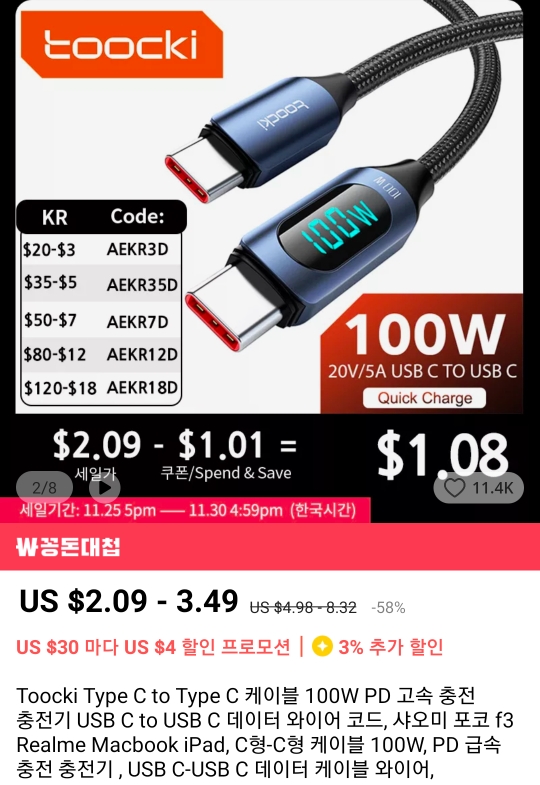 | 알리 13원짜리 65w c to c 케이블 (0) | 2022.11.23 |