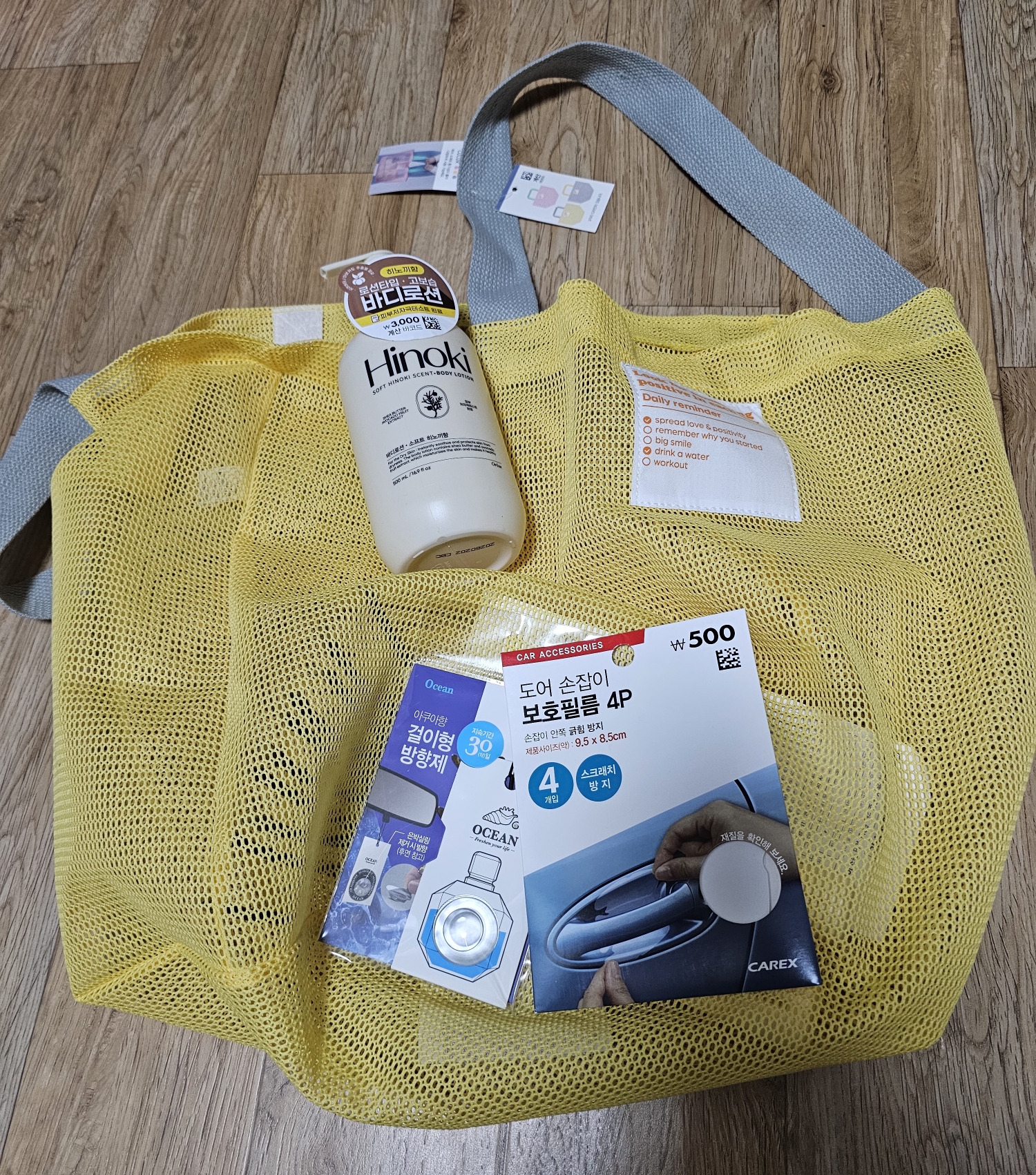 여름에 회사 내부로 목욕용품을 들고가려고 산 큰 매쉬가방입니다ㅠㅠ