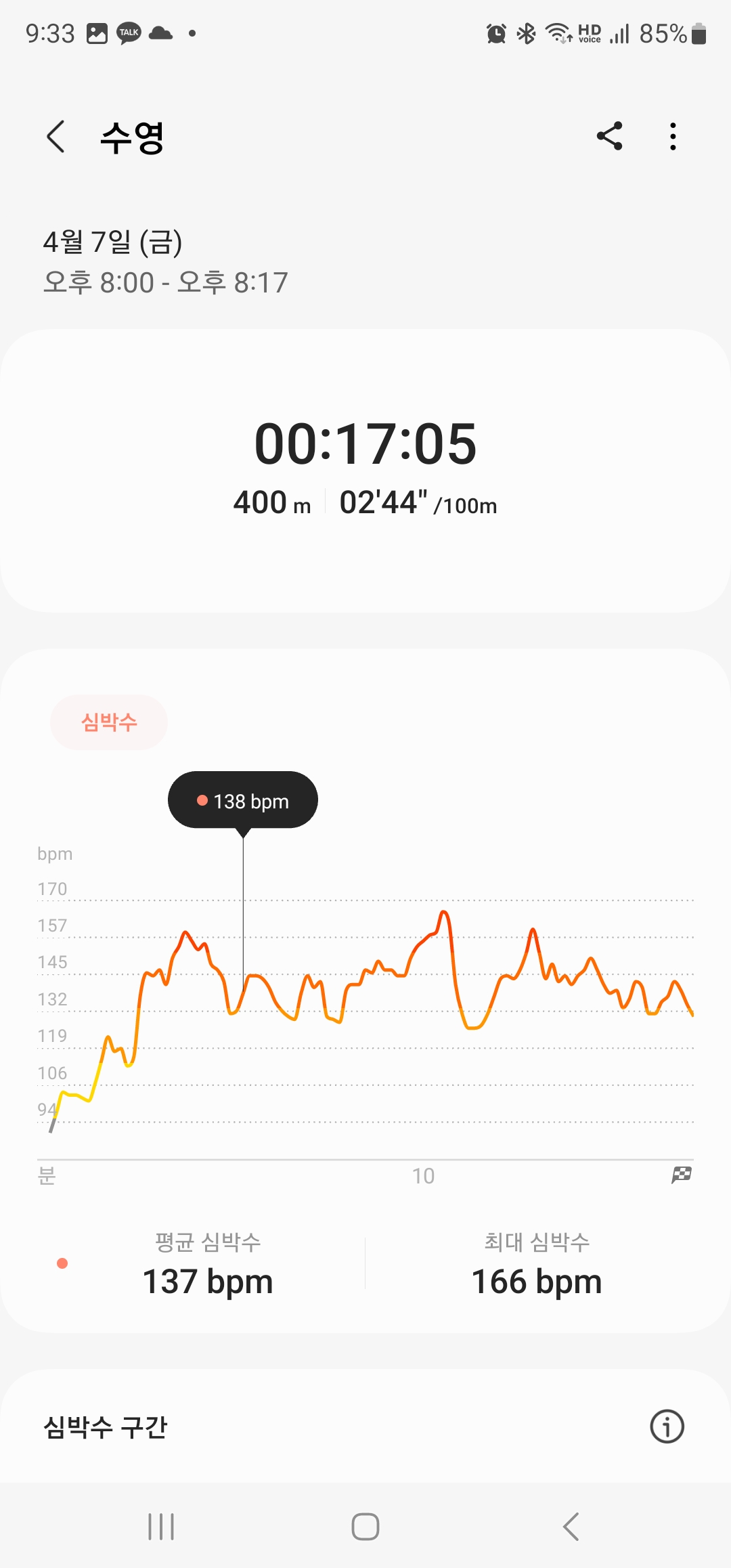 요건 깜빡하고 안켜서 수영한거ㅠ