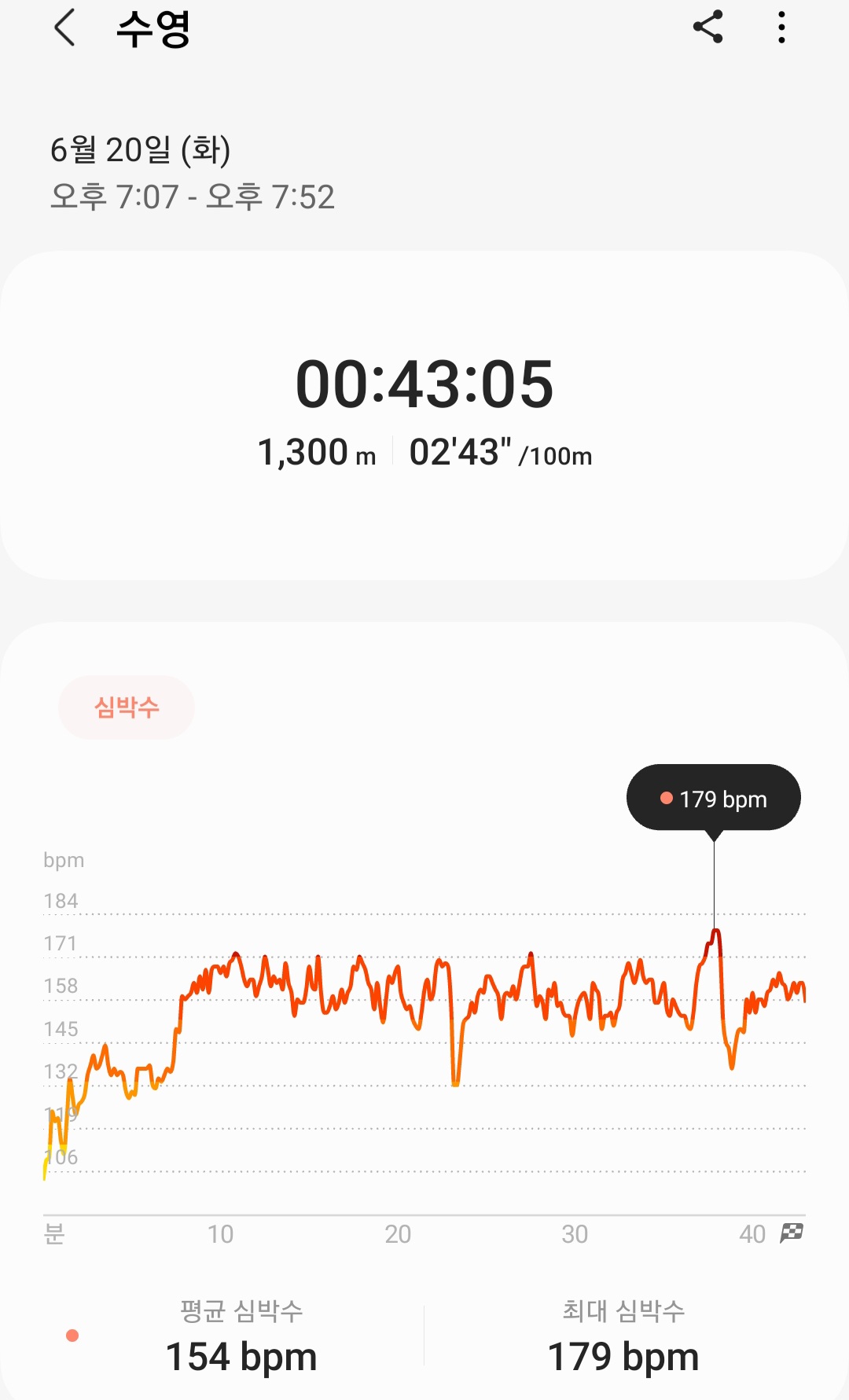 43분 05초 1400m