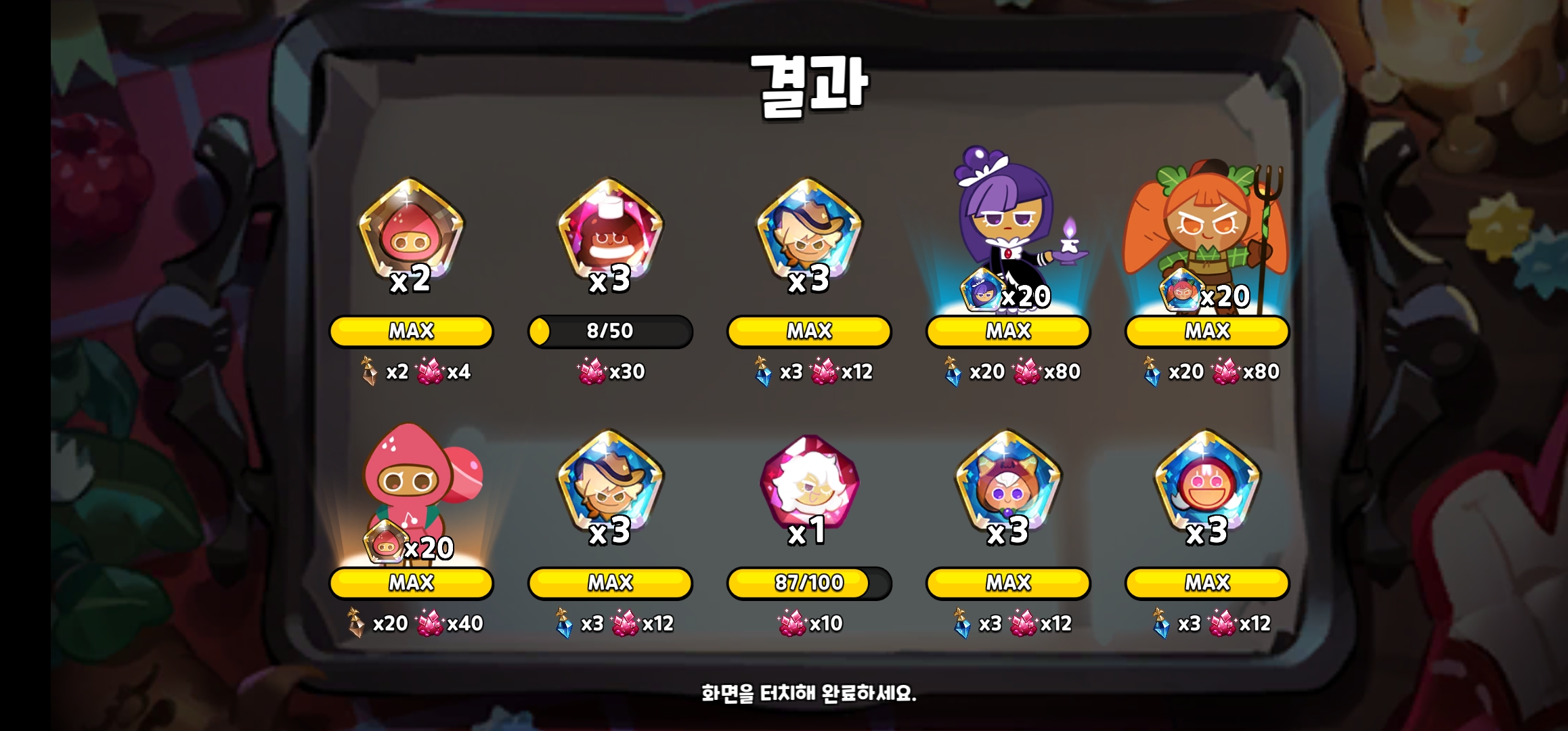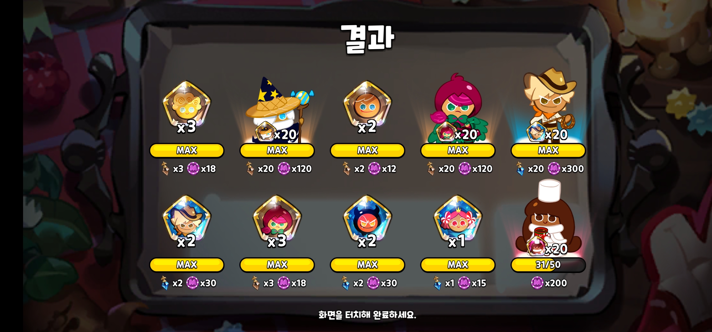 쿠킹덤 뽑기 내역