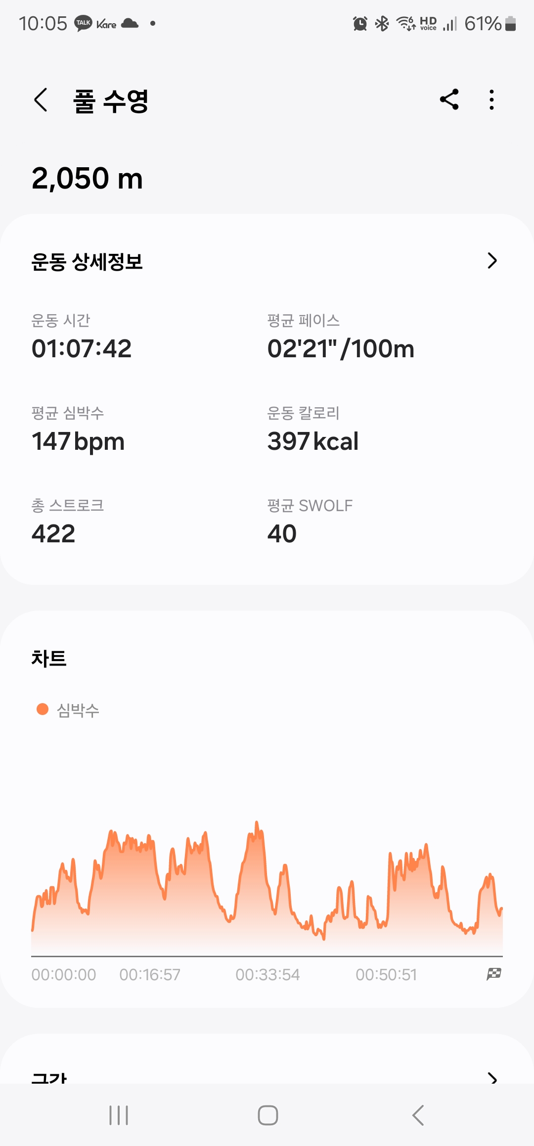 오늘 핀끼고 수영해서 그런가 자유형에 자꾸 킥보드라고 기록됨ㅋㅋㄱ그래 잠영 오래하긴했지