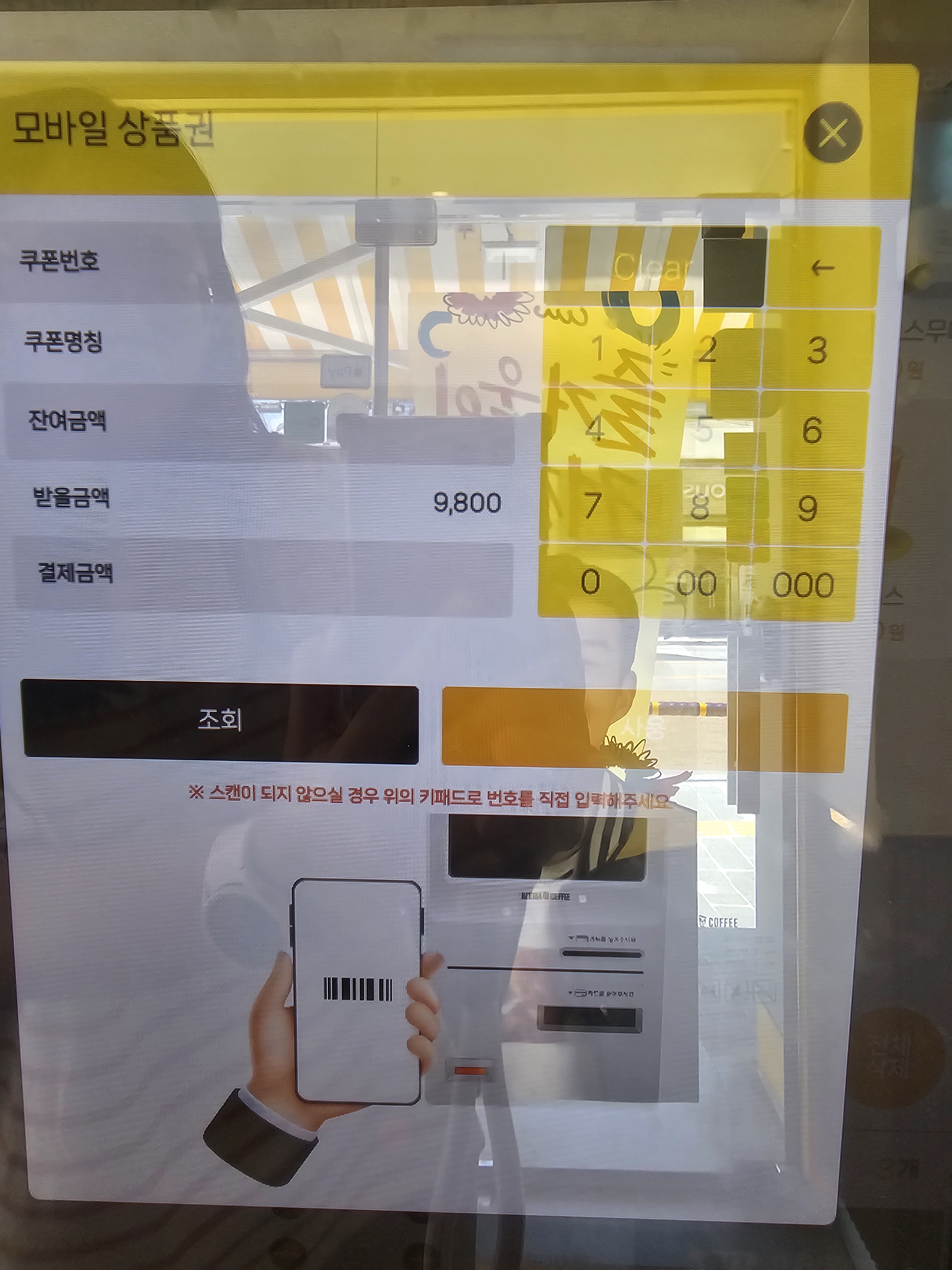 금액이 4000원 남아서 3900원짜리 기프티콘을 또 사용하고 싶으시면 다시 쿠폰사용을 눌러서 바코드 찍어주시면 됩니다.