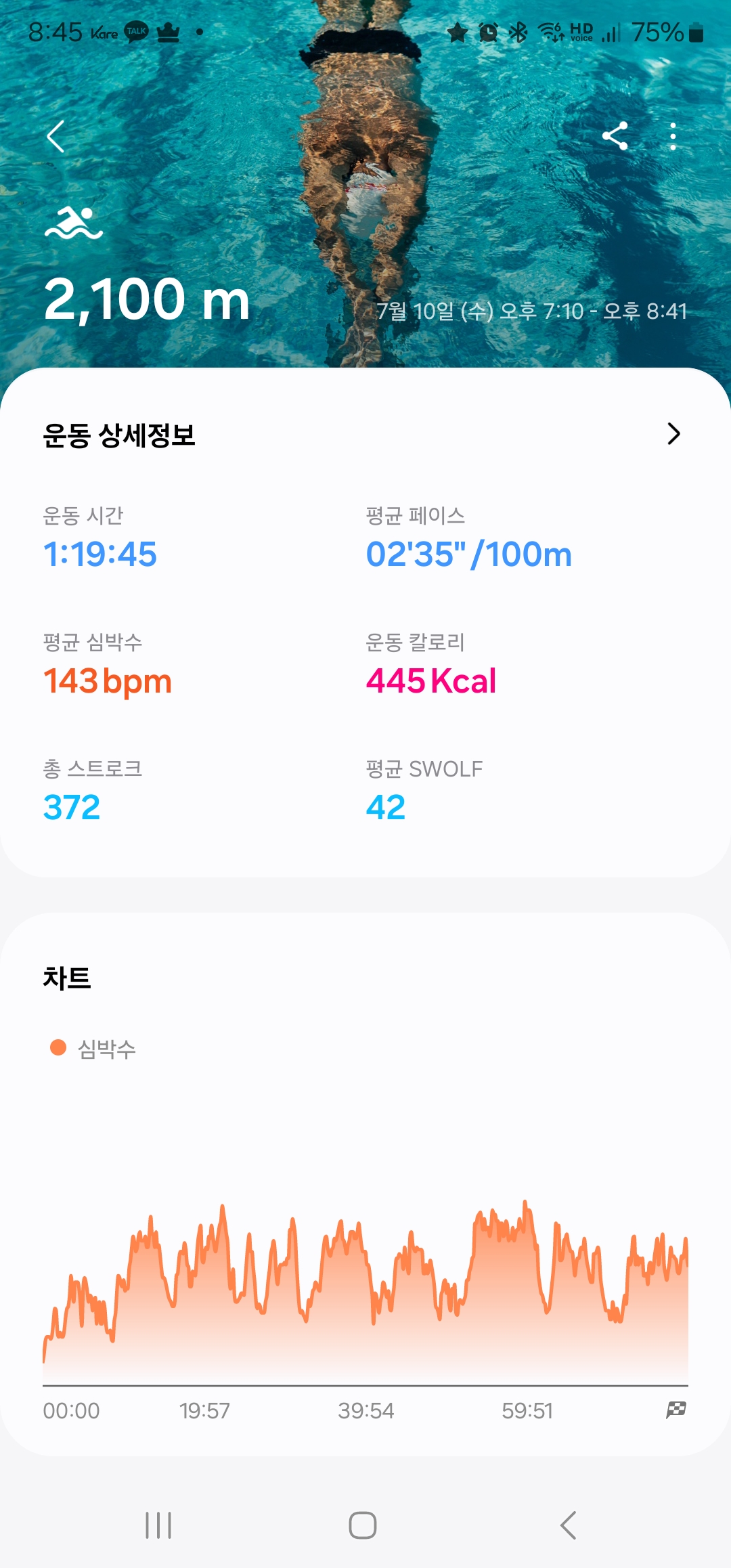 자유형 100m - 팔돌리기 34회 이네 라고 했는데 50m에 34였던..ㅋㅋㅋㅋ 100m에 40회 안되게 돌려봄
