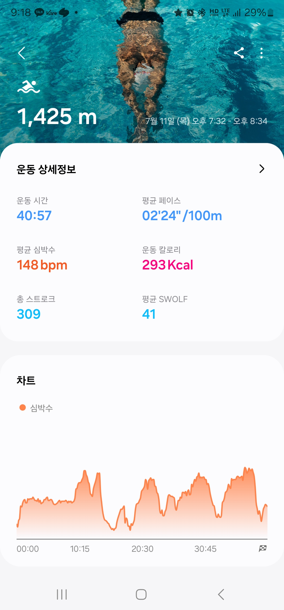 자유형 3바퀴 150m(45초 간격이라는데 음 한 55초?)