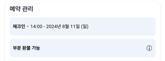 동생 1박 저 2박 부분 환불이 필요했던 부분, 근데 호텔은 당일이라서 안된다.