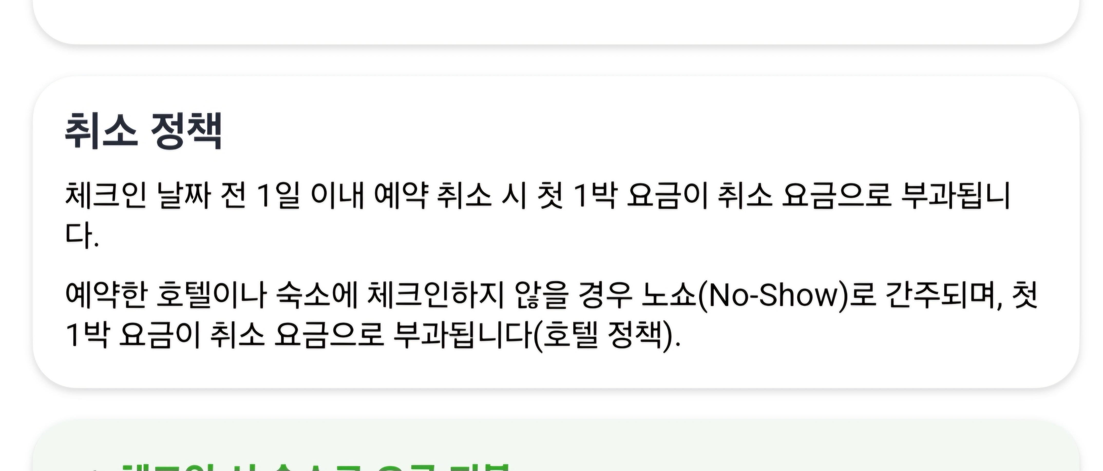 3박 요금 전부 지불하는 것보단 차라리 노쇼해서 1박 지불하고 자동취소되는게 좋겠다라는 생각이 들더라구요.