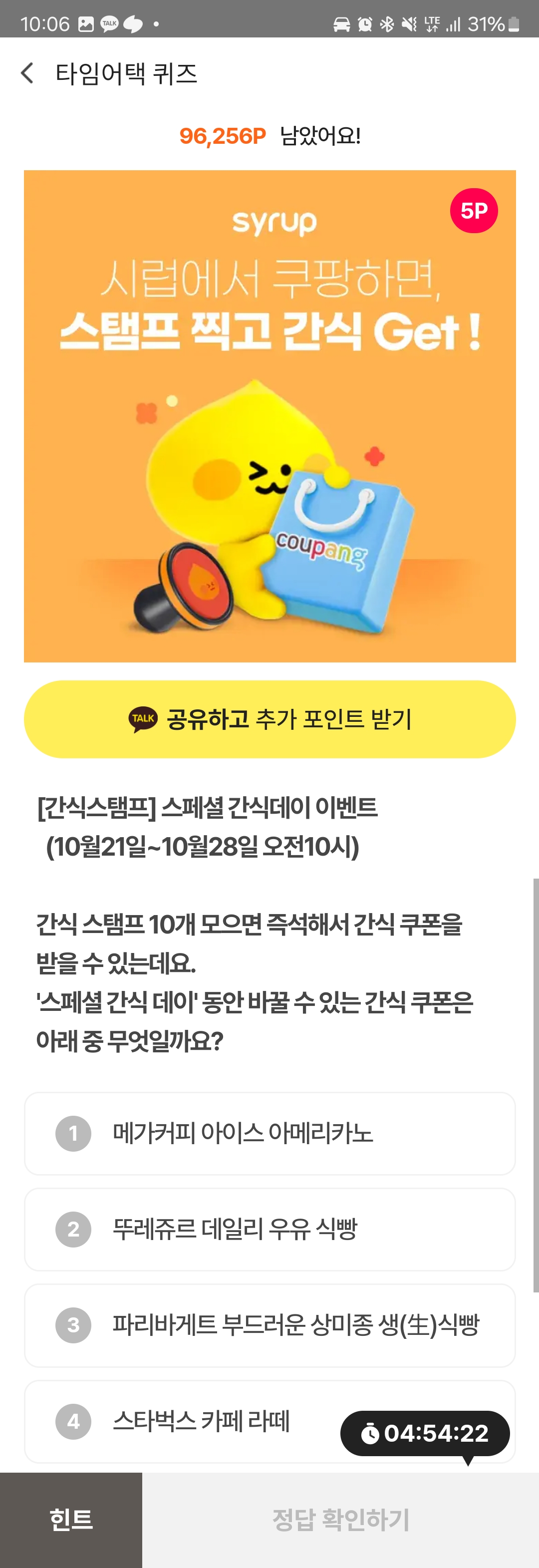 #시럽쿠팡 #앱테크 #시럽 #시럽퀴즈 #시럽간식스탬프