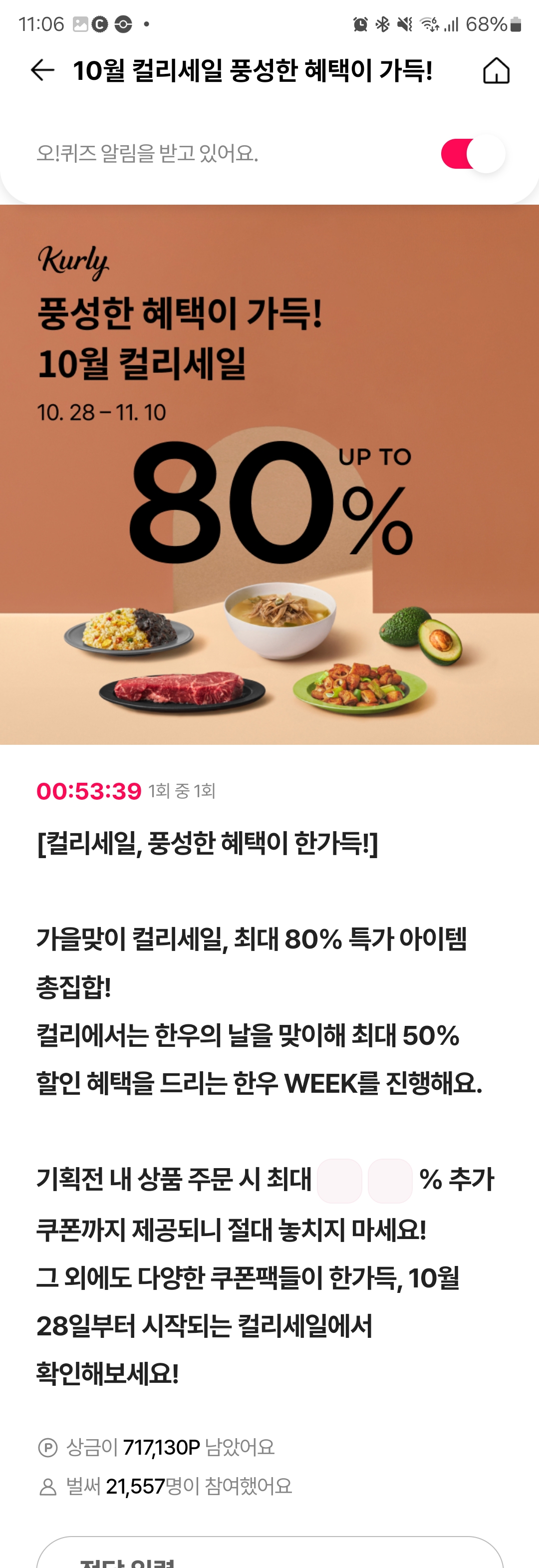 #오퀴즈 #오케이캐시백 #컬리 #ㅇㅇ%할인 #오퀴즈컬리 #ok캐시백