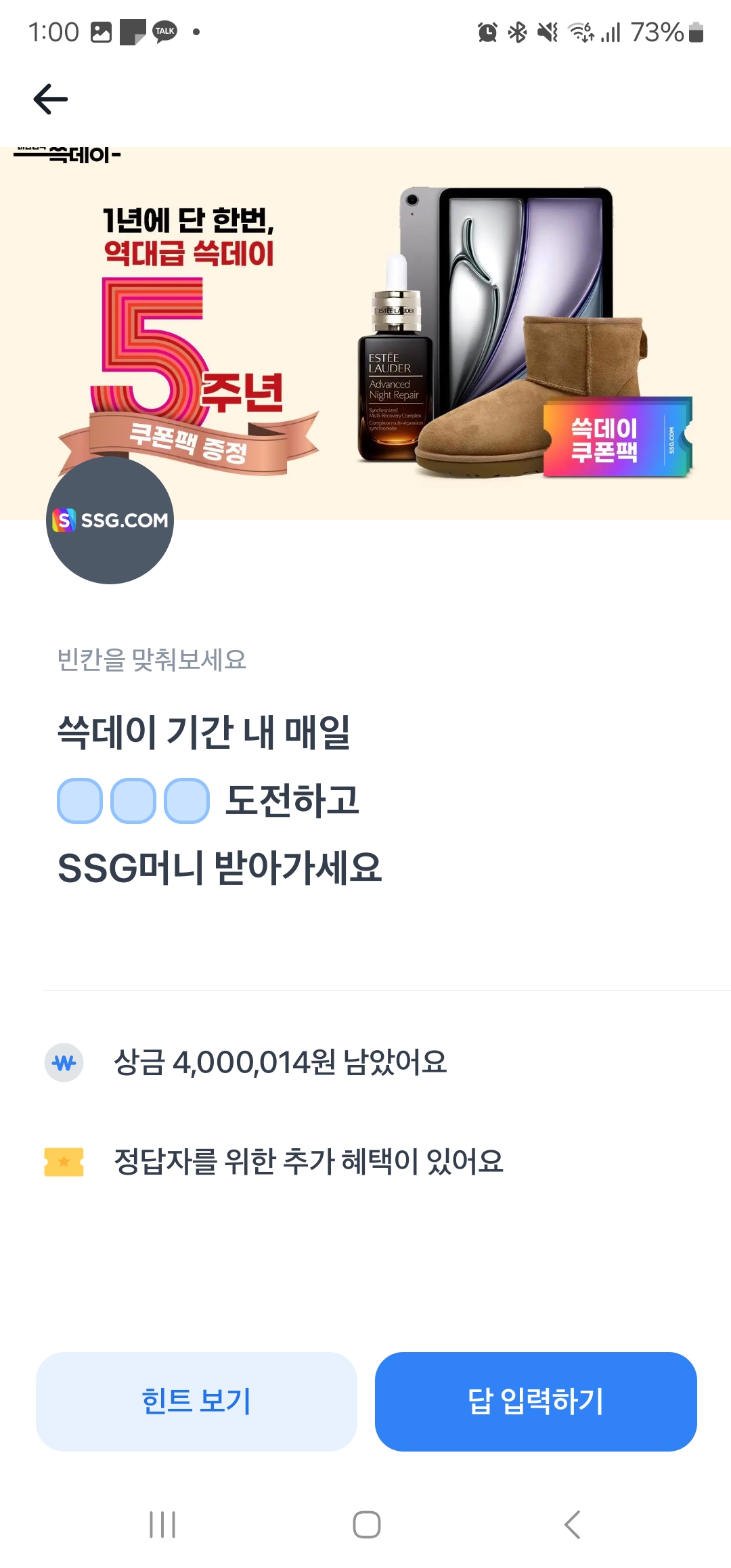 쓱데이 기간 내 매일 ㄷㅌㄹ 도전하고 SSG머니 받아가세요