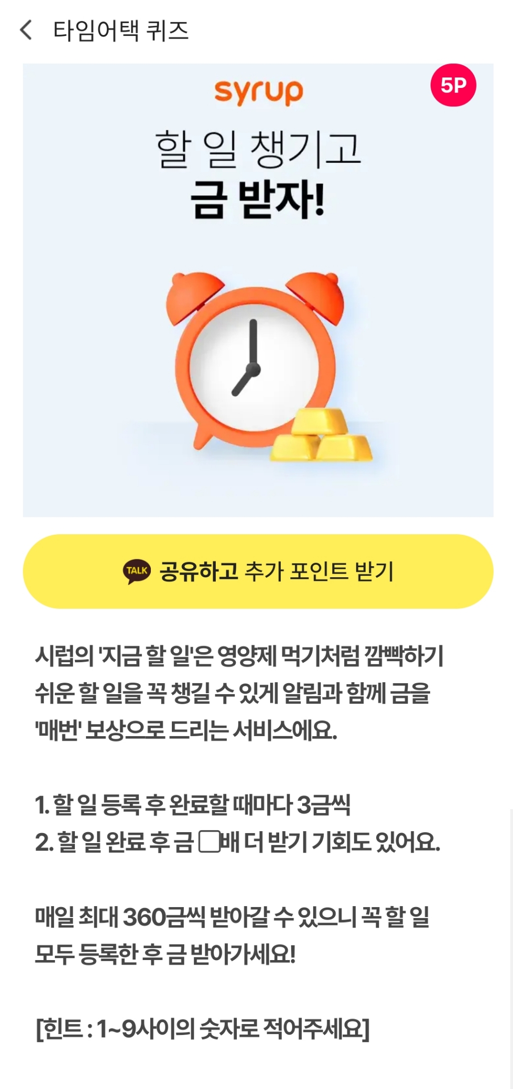2. 할 일 완료 후 금 ▢배 더 받기 기회도 있어요.