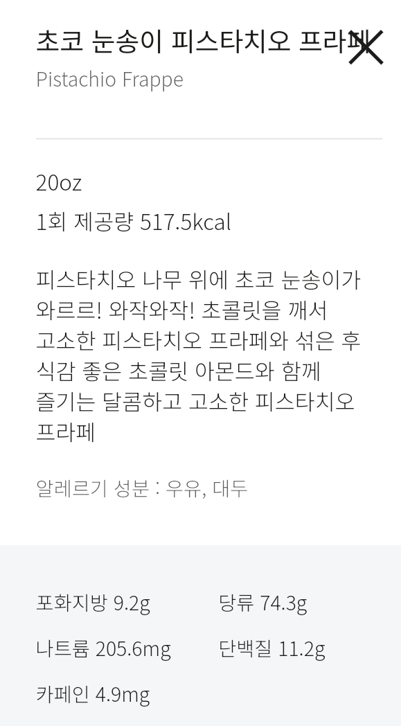 초코를 줄이고 음료량을 늘려줬음 하는 바람뿐