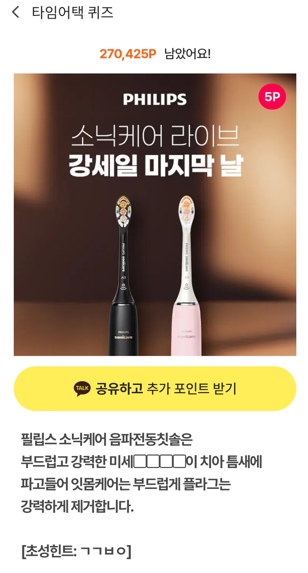 | 시럽 야금야금 타임어택 퀴즈 꼭 검색한 상품만을 구입해야 스탬프를 받을 수 있다. (1) | 2024.11.15 |