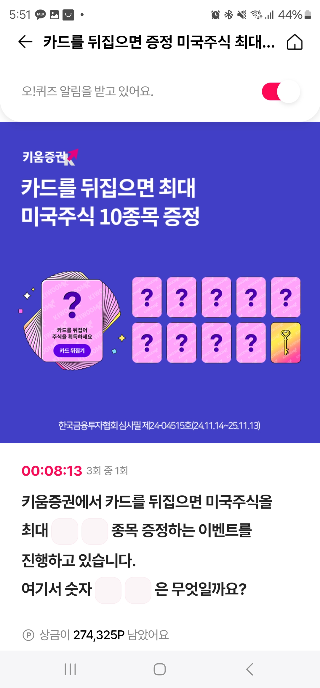 키움증권에서 카드를 뒤집으면 미국주식을 최대 종목 증정하는 이벤트를 진행하고 있습니다.