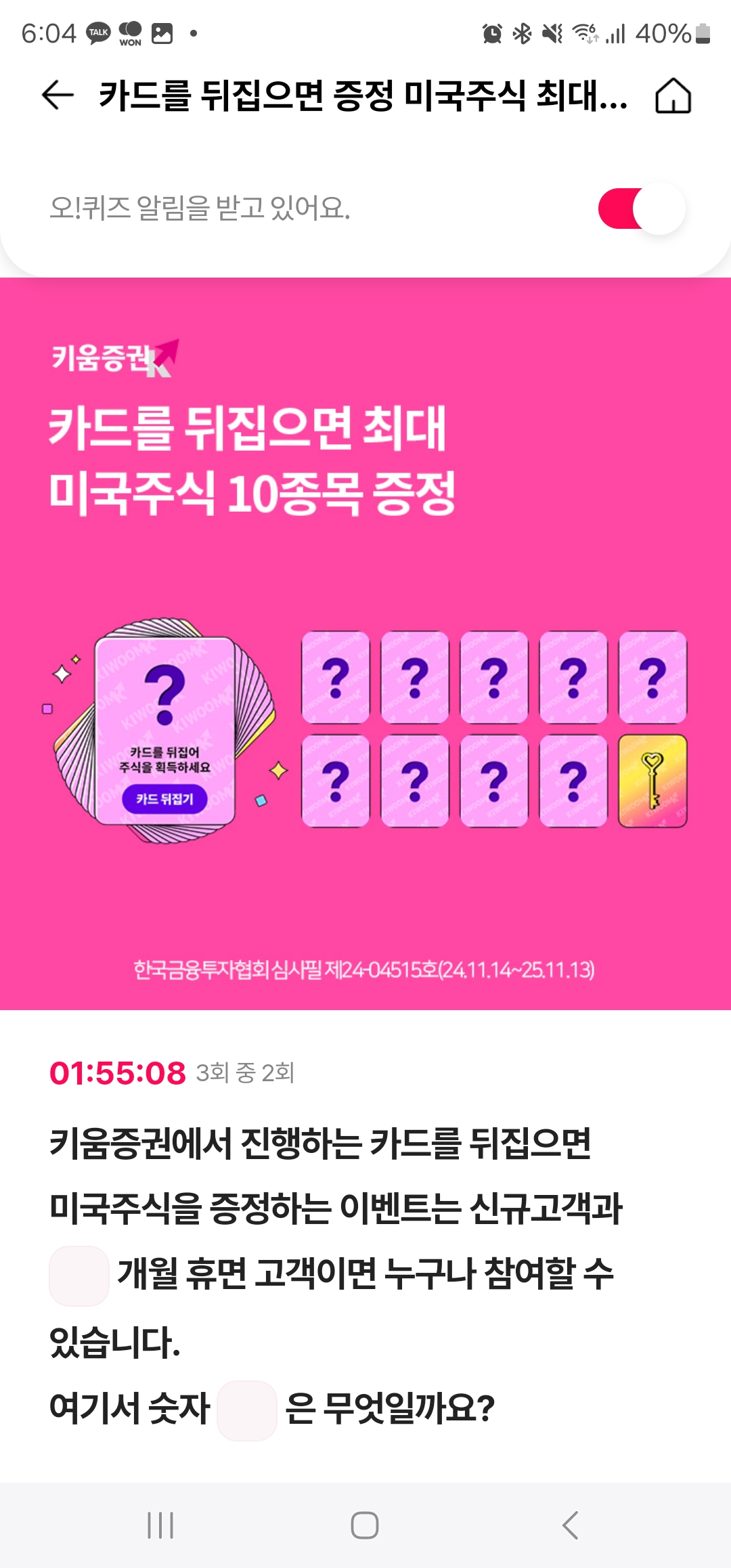 키움증권에서 진행하는 카드를 뒤집으면 미국주식을 증정하는 이벤트는 신규고객과 ㅇ개월 휴면 고객이면 누구나 참여할 수 있습니다.