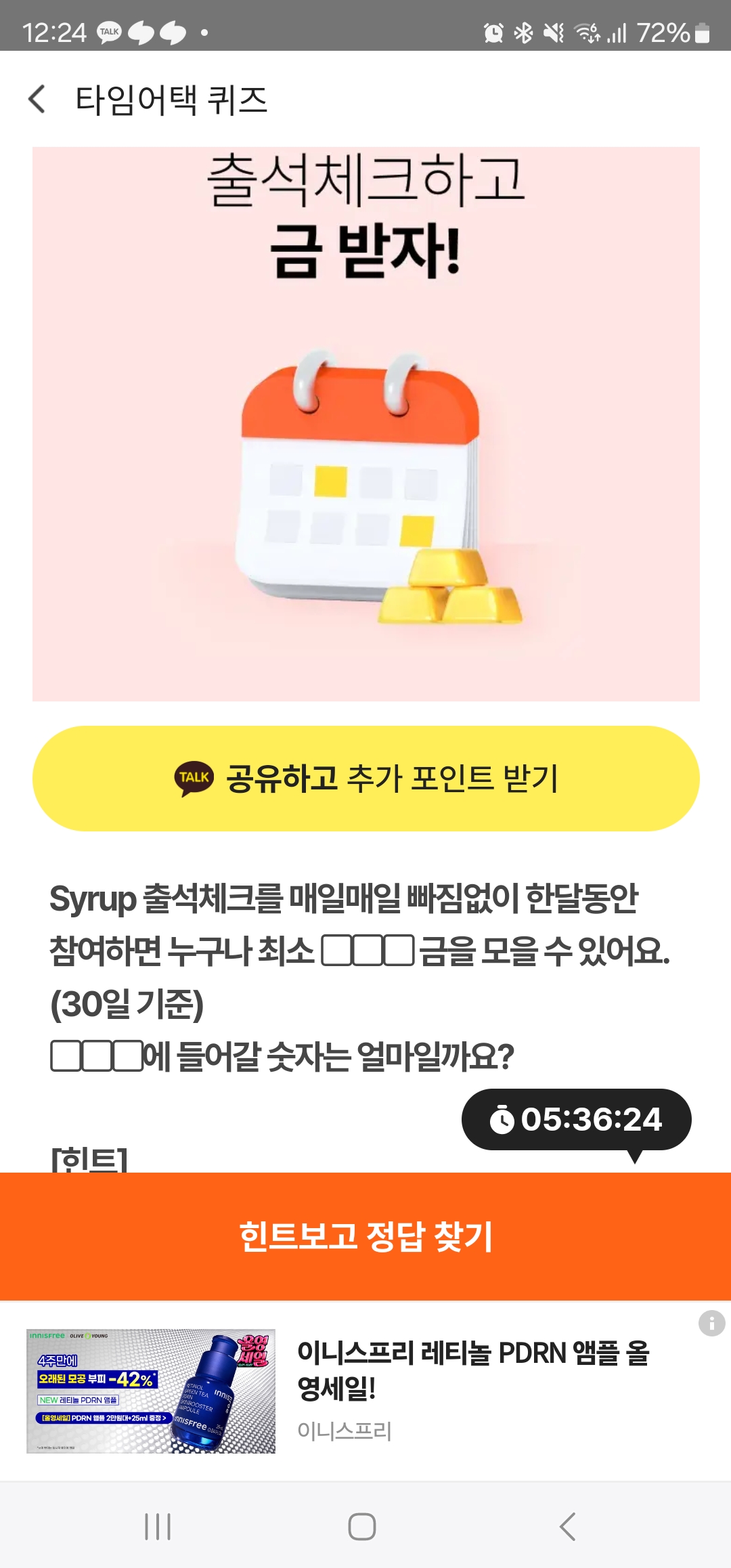 | 24.11.30 시럽 야금야금 타임어택퀴즈 'Syrup 금'은 ▢▢▢▢▢금 부터 OK캐쉬백 포인트나 본인 명의 계좌로 바로 현금화 (2) | 2024.11.30 |