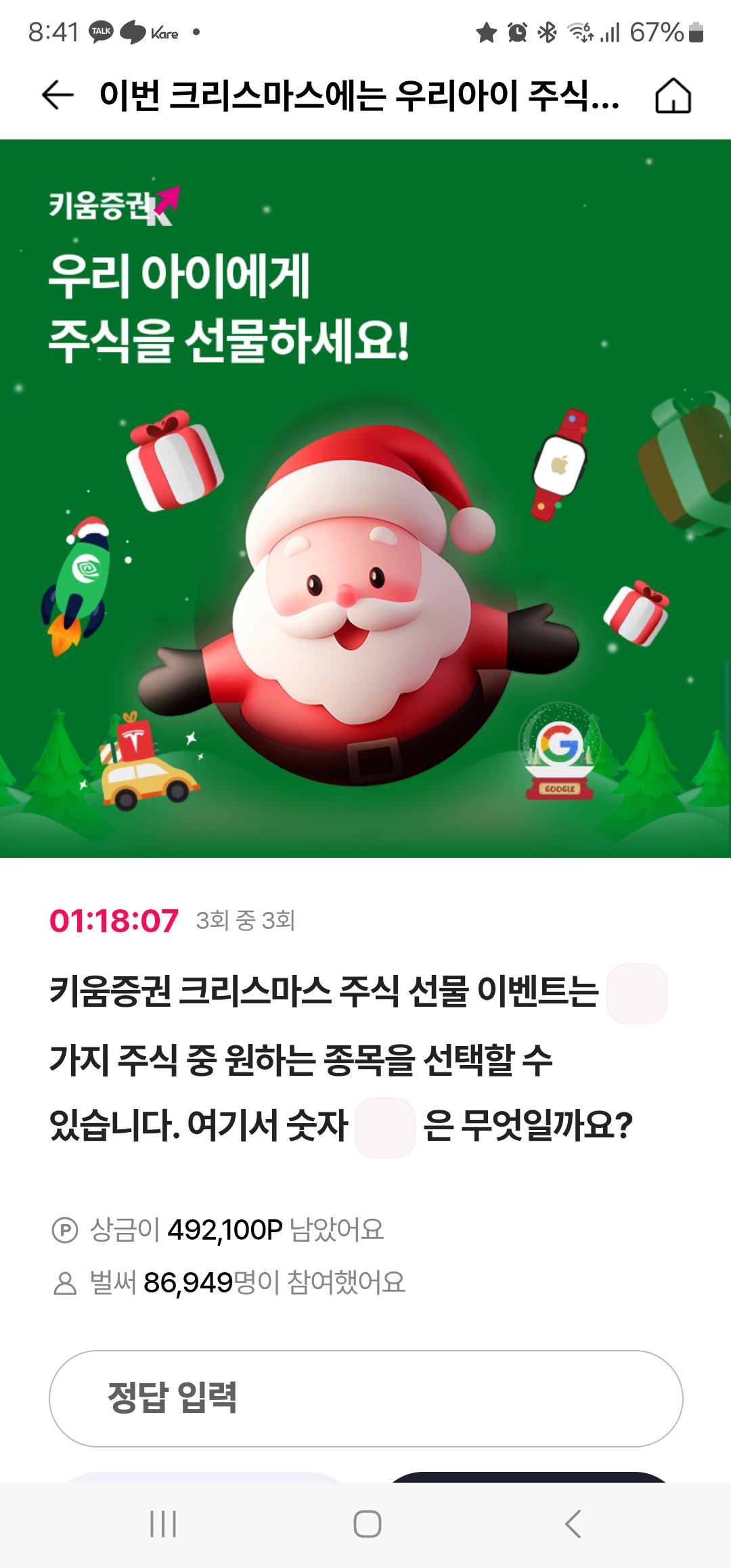 키움증권 크리스마스 주식 선물 이벤트는 ㅇ가지 주식 중 원하는 종목을 선택할 수 있습니다. 여기서 숫자 ㅇ은 무엇일까요?