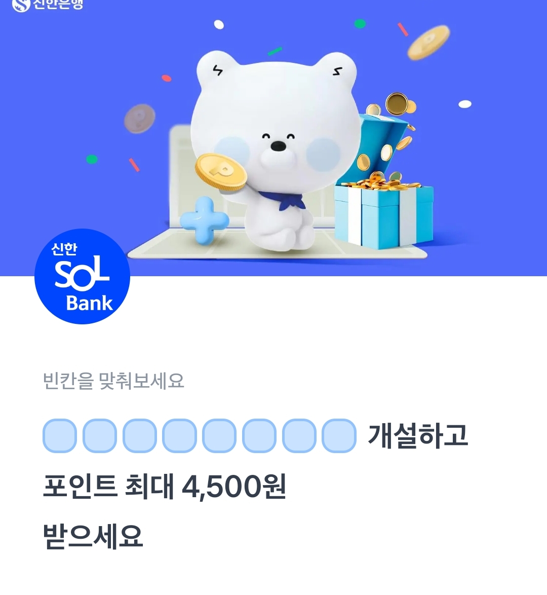 ㅅㅎㅌㅅㅍㅇㅈㄱ 개설하고 포인트 최대 4,500원 받으세요.