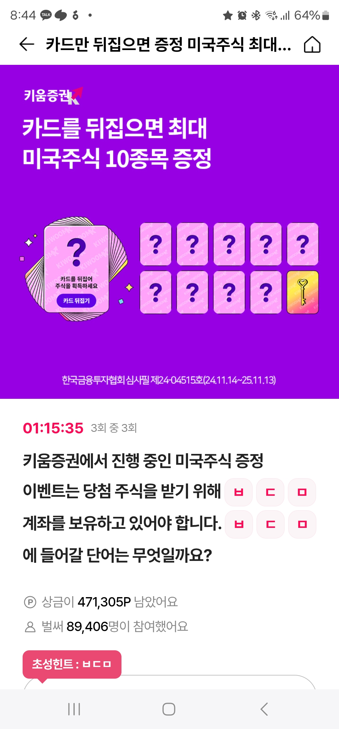 | 24.12.26 오퀴즈 키움증권 미국주식을 최대 ㅇㅇ종목 증정이벤트/티맵대리 (2) | 2024.12.26 |