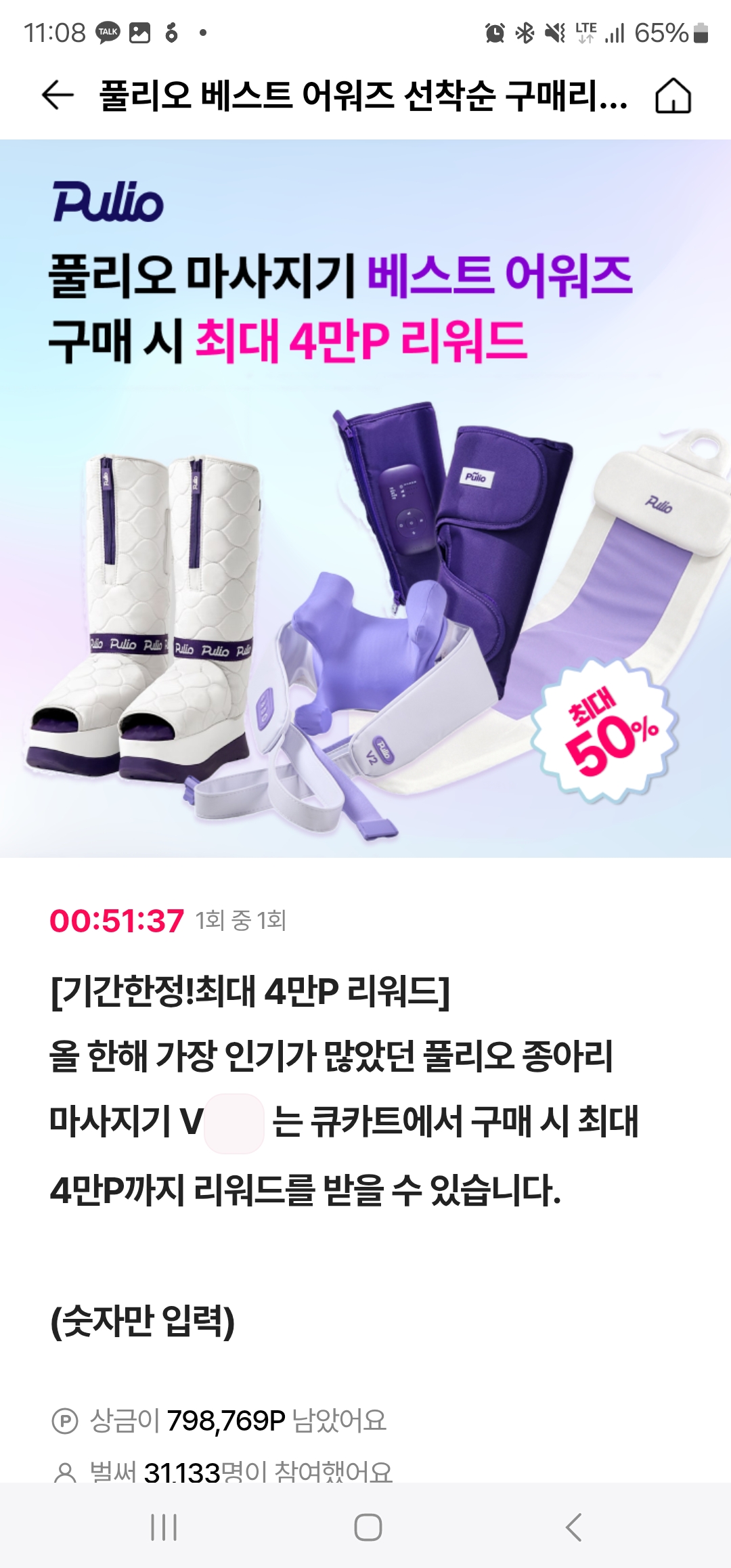 올 한해 가장 인기가 많았던 풀리오 종아리 마사지기 Vㅇ 는 큐카트에서 구매 시 최대 4만P까지 리워드를 받을 수 있습니다.