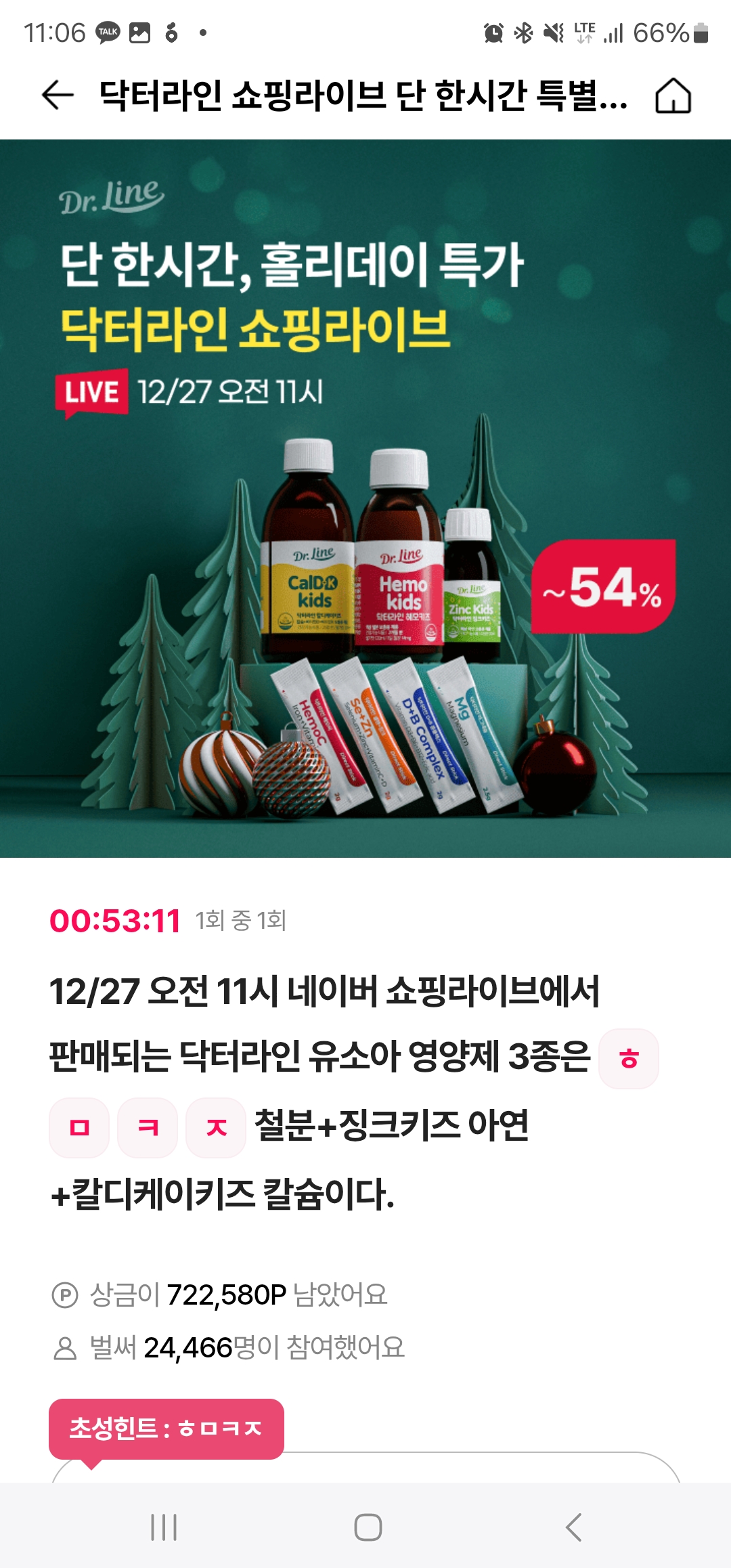 12/27 오전 11시 네이버 쇼핑라이브에서 판매되는 닥터라인 유소아 영양제 3종은 ㅎ ㅁ ㅋ ㅈ 철분+징크키즈 아연+칼디케이키즈 칼슘이다.