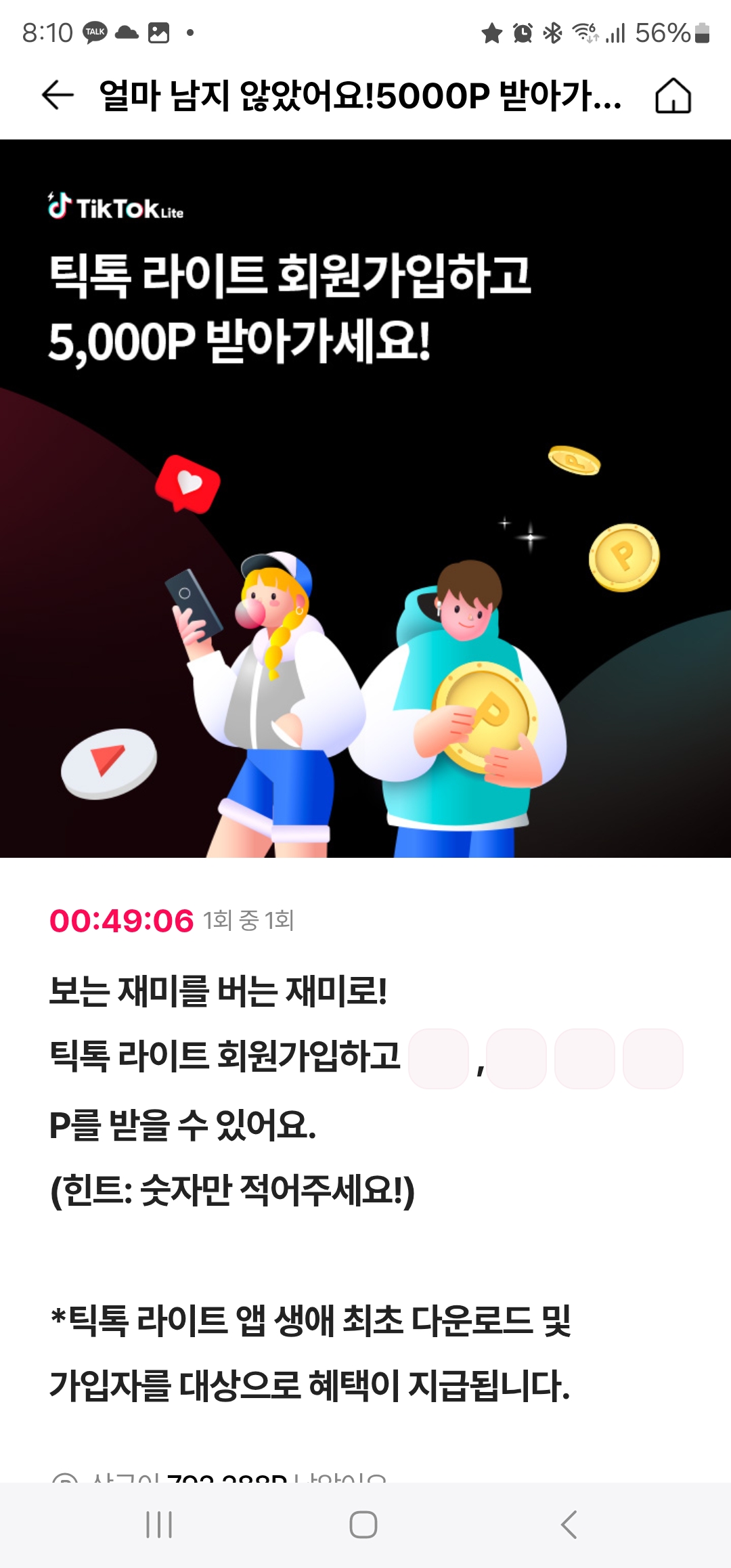 틱톡 라이트 회원가입하고 , P를 받을 수 있어요.