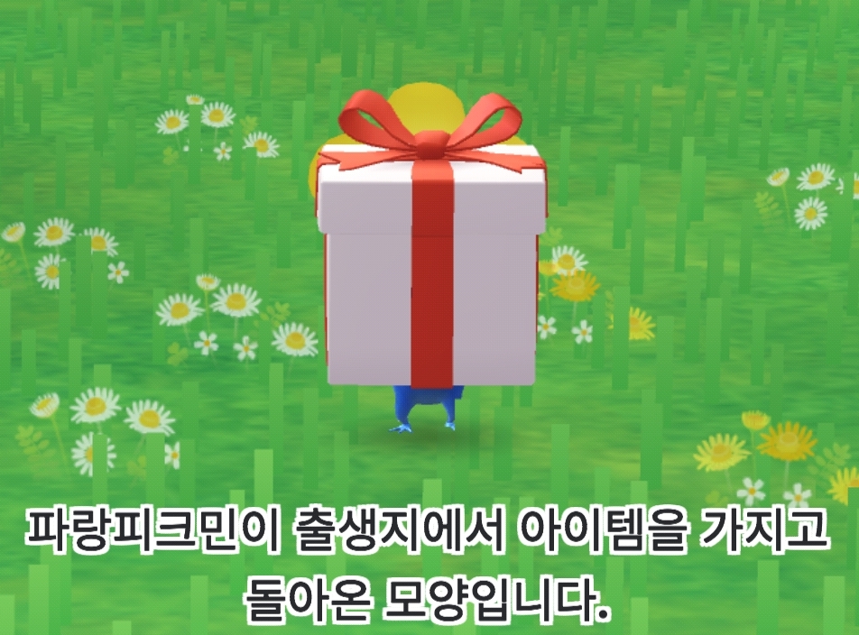 첫 피크민인데 버섯 때리느냐고 늦게 선물 가져옴