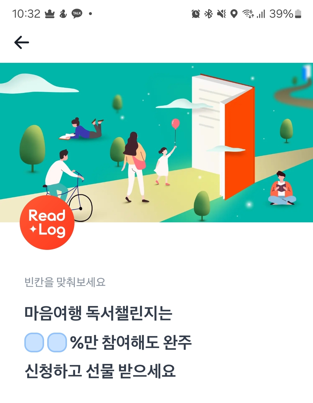 마음여행 독서챌린지는 ㅇㅇ%만 참여해도 완주 신청하고 선물 받으세요.