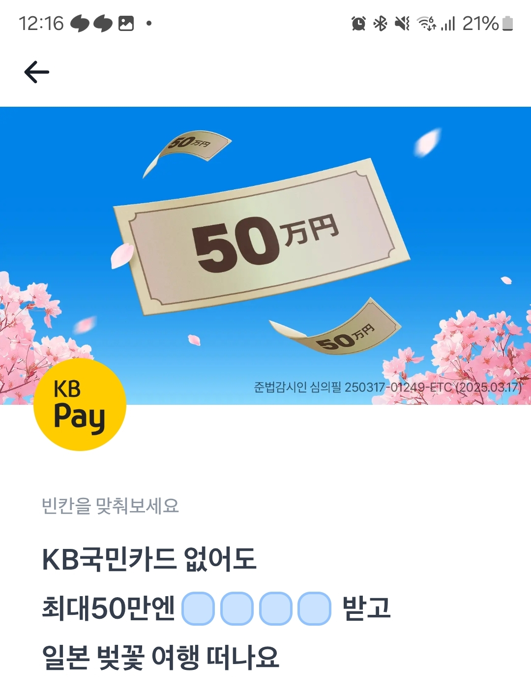 kb국민카드 없어도 최대 50만엔 ㅇㅎㅁㄴ 받고 일본 벚꽃 여행 떠나요