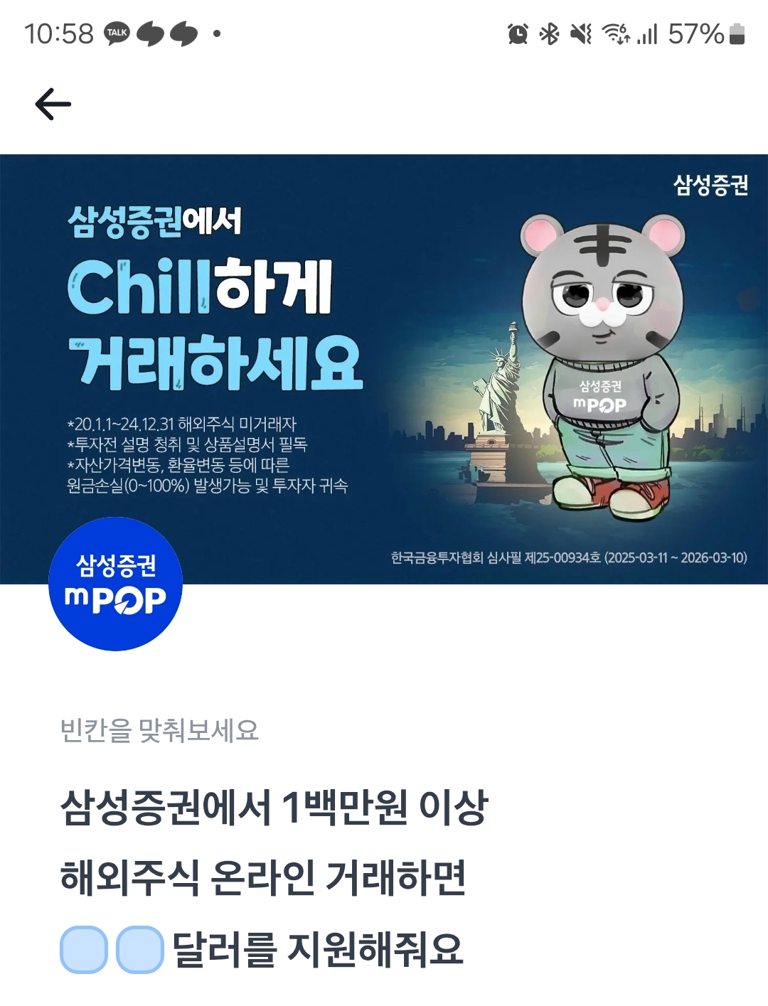 삼성증권에서 1백만원 이상 해외주식 온라인 거래하면 ㅇㅇ달러를 지원해줘요.