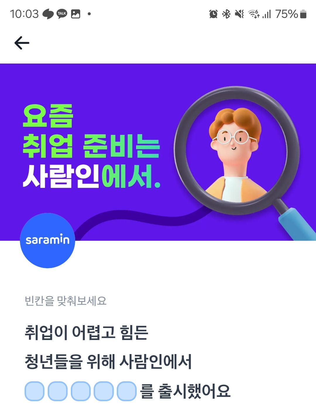 취업이 어렵고 힘든 청년들을 위해 사람인에서 ㅊㅇㅍㅋㅈ를 출시했어요.