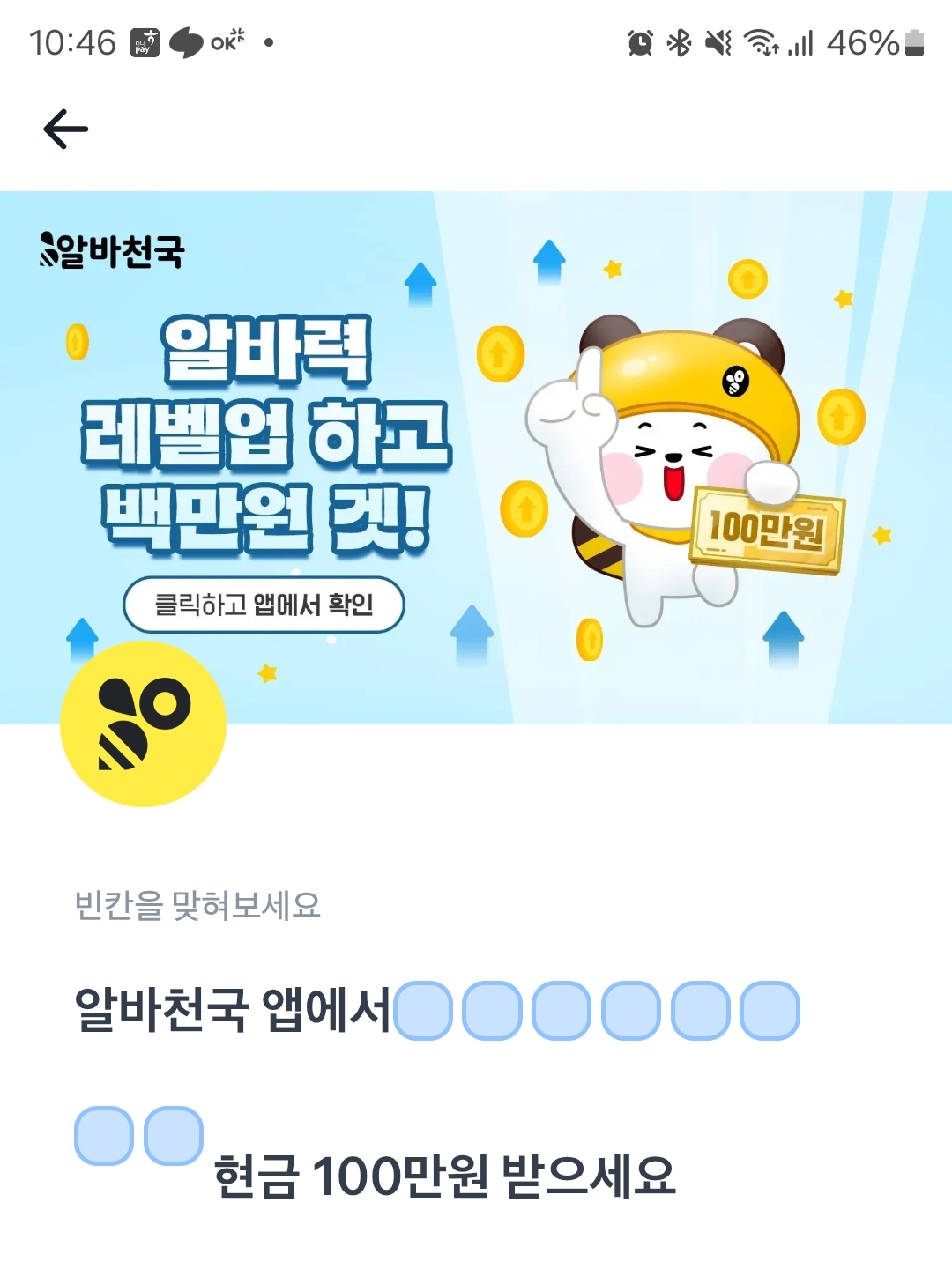 알바천국 앱에서 ㅇㅂㅁㅅㄷㅈㅎㄱ 현금 100만원 받으세요.