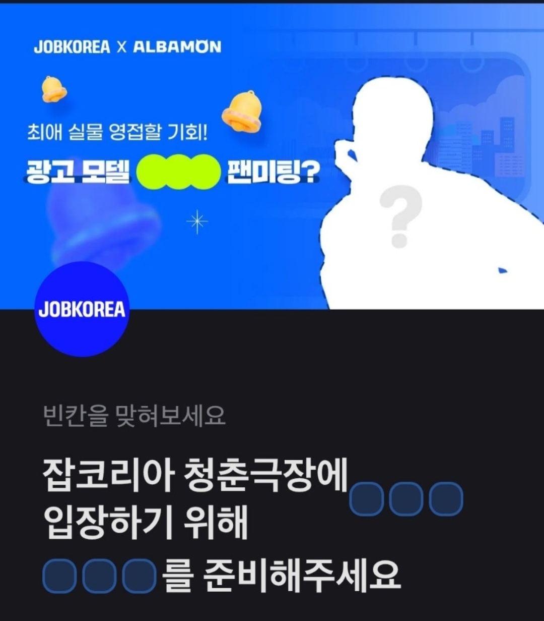 잡코리아 청춘극장에 입장하기 위해 ㄱㅂㄱㅈㅁㅈ를 준비해주세요