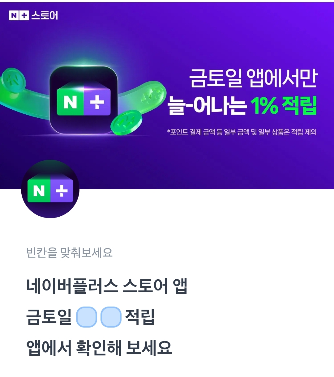 네이버플러스 스토어 앱 금토일 ㅊㄱ적립 앱에서 확인해보세요.