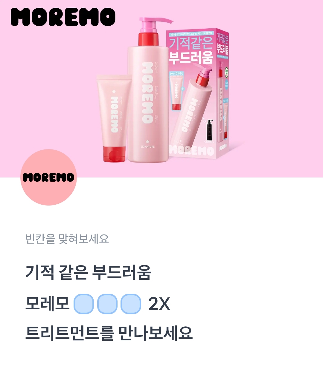 모레모 기적같은 부드러움 모레모 ㅁㄹㅋ 2X 트리트먼트를 만나보세요.