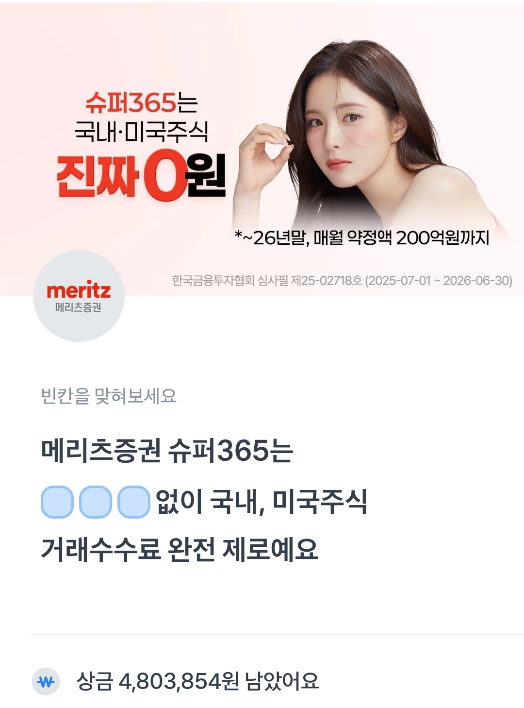토퀴 토스퀴즈 메리츠증권 슈퍼365는 ㅅㅅㅈ없이 국내, 미국주식 거래수수료 완전 제로예요.
