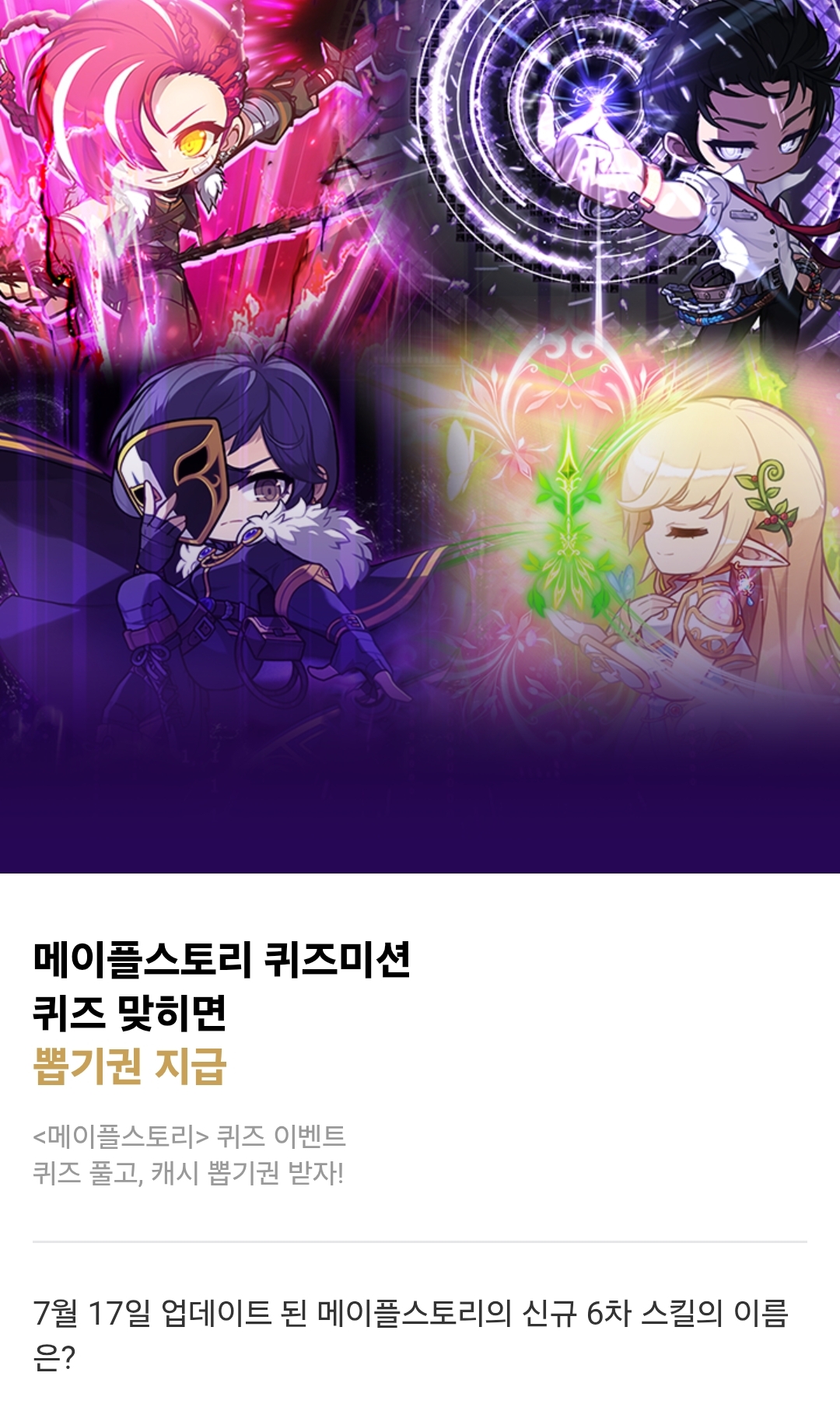 카카오페이지 퀴즈 메이플스토리 퀴즈미션