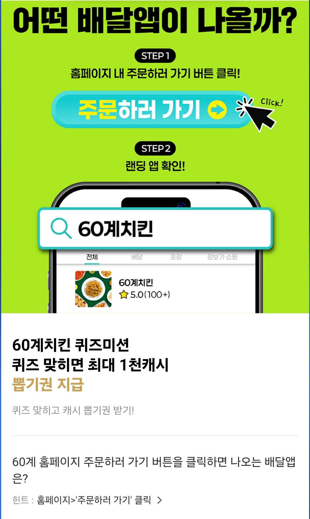 카카오페이지 60계치킨 퀴즈미션