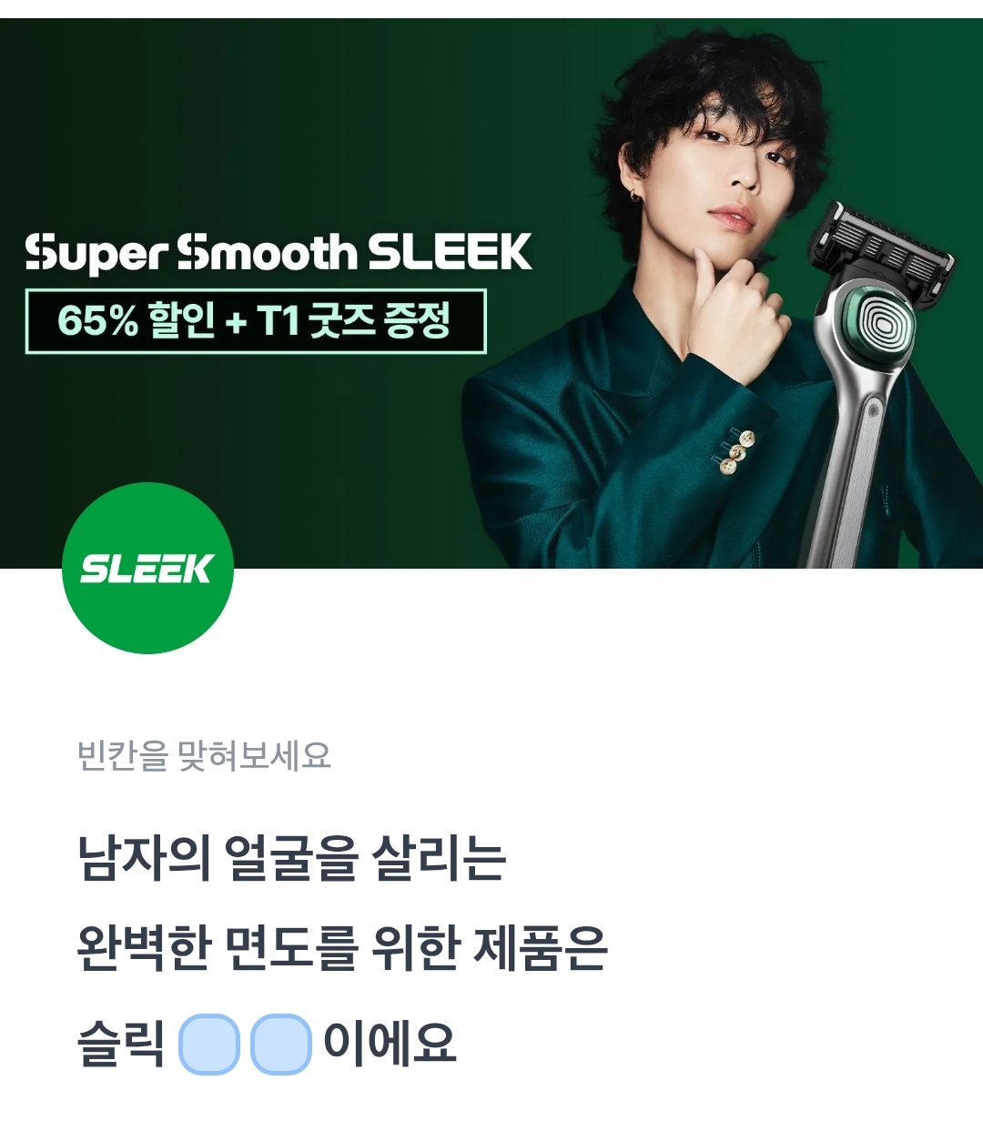 토퀴 토스퀴즈 sleek 남자의 얼굴을 살리는 완벽한 면도를 위한 제품은 슬릭ㅁㅅ이에요.